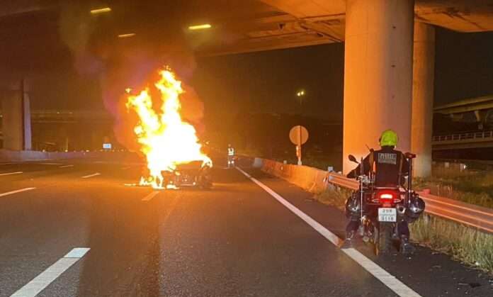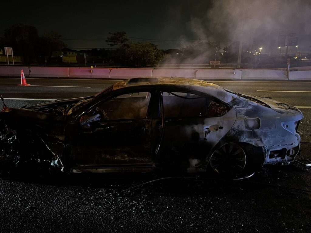 ไฟไหม้รถเก๋งวอดทั้งคัน กลางถนนมอเตอร์เวย์ หญิงบาดเจ็บเล็กน้อย รอสาเหตุที่แน่ชัด