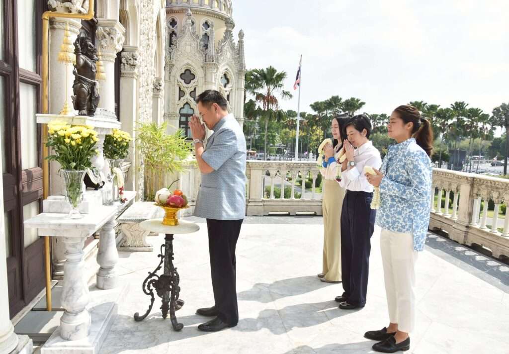 นายอนุทิน ชาญวีรกูล นายกรัฐมนตรีและรัฐมนตรีว่าการกระทรวงมหาดไทย นำนางสาวรัชดา ธนาดิเรก โฆษกประจำสำนักนายกรัฐมนตรี นางสาวลลิดา เพริศวิวัฒนา รองโฆษกประจำสำนักนายกรัฐมนตรี นางสาวพลอยทะเล ลักษมีแสงจันทร์ อดีตผู้สมัคร สส.พรรคภูมิใจไทย และว่าที่รองโฆษกประจำสำนักนายกรัฐมนตรี สักการะองค์นรสิงห์บนตึกไทยคู่ฟ้า เพื่อความเป็นสิริมงคล หลังทีมโฆษกรัฐบาลมาจากพรรคภูมิใจไทยเข้ารับตำแหน่ง พร้อมกันนี้ ทีมโฆษกรัฐบาลนำพวงมาลัยไหว้ขอพรนายอนุทิน ชาญวีรกูล นายกรัฐมนตรี เนื่องในโอกาสวันสงกรานต์ ปี 2569 เพื่อความเป็นสิริมงคล