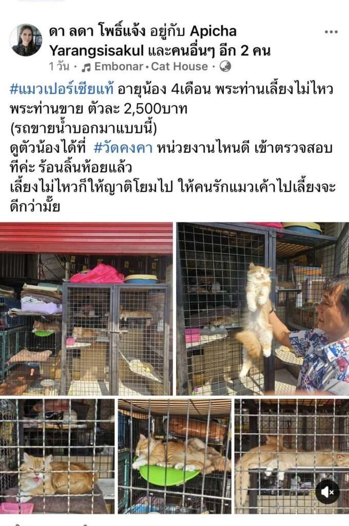 วันที่ 16 เมษายน 69 ผู้สื่อข่าวลงพื้นที่ตรวจสอบภายในบริเวณวัดคงคา ตำบลบางม่วง อำเภอบางใหญ่ จังหวัดนนทบุรี หลัง Social แชร์ข้อความว่า ” แมวเปอร์เซียแท้ อายุ 4 เดือนพระท่านเลี้ยงไม่ไหว พระท่านขายตัวละ 2,500 บาท (รถขายน้ำบอกมาแบบนี้) ดูตัวน้องได้ที่วัดคงคา หน่วยงานไหนดีเข้าตรวจสอบทีค่ะร้อนลิ้นห้อยแล้วเลี้ยงไม่ไหวก็ให้ญาติโยมไป ให้คนรักแมวเขาไปเลี้ยงจะดีกว่าไหม”
