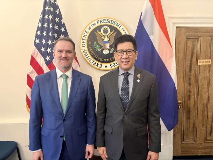 สหรัฐอเมริกา, วันที่ 17 เม.ย. (ตามเวลาท้องถิ่น) นายเอกนิติ นิติทัณฑ์ประภาศ รองนายกรัฐมนตรี และรมว.คลัง ซึ่งอยู่ระหว่างการเยือนกรุงวอชิงตัน ดี.ซี. เพื่อเข้าร่วมการประชุม IMF/ World Bank Spring Meetings 2026 เปิดเผยว่าเมื่อวันที่ 15 เมษายน ที่ผ่านมาได้พบปะหารือกับนายเจมีสัน กรีเออร์ (Jamieson Greer) ผู้แทนการค้าสหรัฐฯ (USTR) เพื่อกระชับความสัมพันธ์ทางเศรษฐกิจการค้าระหว่างประเทศไทยและสหรัฐอเมริกา