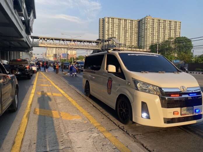 เมื่อเวลา 17.30 น. วันที่ 17 เม.ย. 69 เจ้าหน้าที่ตำรวจ สภ.รัตนาธิเบศร์ รับแจ้งอุบัติเหตุรถจยย.เฉี่ยวชนกับรถแท็กซี่ ก่อนเสียหลักล้ม ถูกรถกระบะขับสวนเลนทับร่างซ้ำเสียชีวิต เหตุเกิดบริเวณเชิงสะพานข้ามแยกแคราย (ขาเข้า) ตรงข้ามเอสพลานาด แคราย อ.เมืองนนทบุรี จ.นนทบุรี จึงพร้อมด้วยอาสาสมัครมูลนิธิป่อเต็กตึ๊งและแพทย์จากสถาบันนิติวิทยาศาสตร์รีบรุดตรวจสอบ
