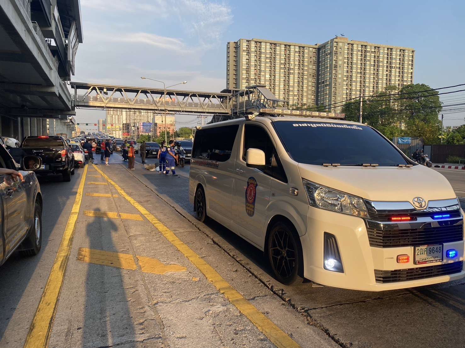 ที่เกิดเหตุบริเวณเชิงสะพานข้ามแยกแคราย พบผู้เสียชีวิตทราบชื่อคือนายสหฤทธิ์ ไชยฤทธิ์ อายุ 31 ปี ชาวจ.อุบลราชธานี อาชีพวิศวกร สวมเสื้อโปโลสีเทา ใส่กางเกงขายาวสีดำ ใส่หมวกกันน็อคแบบเต็มใบสีเขียว สะพายกระเป๋าที่ด้านหลัง สวมรองเท้าผ้าใบ สภาพศพนอนคว่ำหน้าจมกองเลือด มีบาดแผลบริเวณใบหน้า และสะโพกซ้ายเป็นแผลฉกรรจ์ แขน-ขาหักผิดรูป ใกล้กันพบรถกระบะ 4 ประตู ยี่ห้อโตโยต้า รุ่นรีโว่ สีบรอนซ์เงิน หมายเลขทะเบียน กต 9765 ปทุมธานี ด้านคนขับทราบชื่อคือ MR.ANDREASSEN YNGVAR อายุ 74 ปี ชาวนอร์เวย์ ซึ่งอยู่ในอาการตกใจ ยืนรอให้การกับเจ้าหน้าที่ตำรวจอยู่ในที่เกิดเหตุ ถัดมาประมาณ 50 เมตร พบรถจยย. ยี่ห้อ HONDA รุ่น CBR 150 สีแดง หมายเลขทะเบียน คบบ 875 อุบลราชธานี (ของผู้เสียชีวิต) รถแท็กซี่ ยี่ห้อโตโยต้า สีชมพู-ขาว หมายเลขทะเบียน ทอ 2210 กทม. และรถตู้ส่วนบุคคล ยี่ห้อโตโยต้า สีดำ หมายเลขทะเบียน ฆห 124 กทม. เบื้องต้นอยู่ระหว่างตรวจสอบ