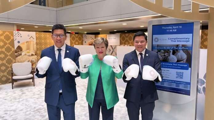 ดร.เอกนิติ นิติทัณฑ์ประภาศ รองนายกรัฐมนตรีและรัฐมนตรีว่าการกระทรวงการคลัง และนายวิทัย รัตนากร ผู้ว่าการธนาคารแห่งประเทศไทย ร่วมการประชุมหารือทวิภาคีกับ Mrs. Kristalina Georgieva กรรมการจัดการกองทุนการเงินระหว่างประเทศ (IMF) ในประเด็นที่ประเทศไทยจะเป็นเจ้าภาพการประชุมประจำปีสภาผู้ว่าการธนาคารโลกและกองทุนการเงินระหว่างประเทศในปี 2569 เพื่อหารือถึงความคืบหน้าการเตรียมความพร้อมและหารือถึงนโยบายที่ประเทศไทยให้ความสำคัญ ในห้วงการประชุมสภาผู้ว่าการธนาคารโลกและกองทุนการเงินระหว่างประเทศ (Spring Meetings) ปี 2569 ณ กรุงวอชิงตัน ดี.ซี. สหรัฐอเมริกา เมื่อวันที่ 16 เมษายน 2569
