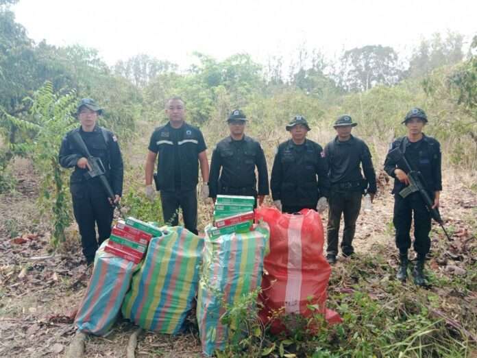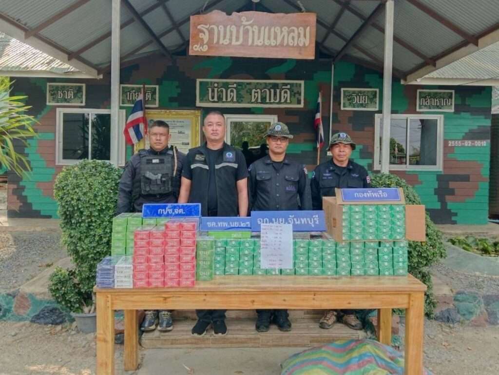 กองทัพเรือเดินหน้าคุมเข้มชายแดนตะวันออกไม่หยุด ล่าสุดสกัดบุหรี่เถื่อนมูลค่าเกือบ 2 ล้านบาท ซุกพงหญ้าพื้นที่จันทบุรี ตอกย้ำมาตรการเข้มไม่ปล่อยพื้นที่เป็นช่องทางผิดกฎหมาย พร้อมลุยลาดตระเวนเชิงรุกต่อเนื่อง