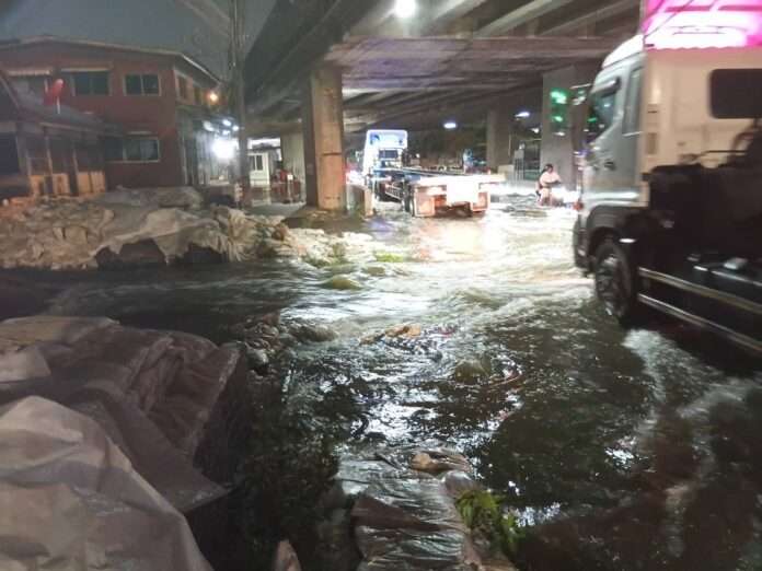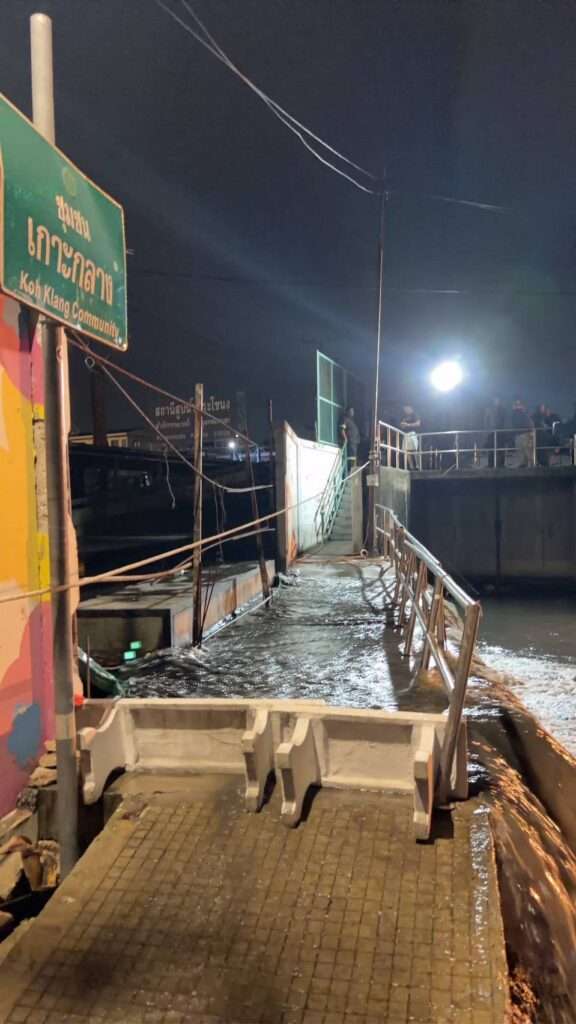 สำหรับเหตุการณ์น้ำทะเลหนุนสูงในพื้นที่เขตคลองเตย ส่งผลให้แนวป้องกันน้ำเกิดความเสียหายพร้อมกัน 2 จุดหลัก บริเวณชุมชนเกาะกลาง