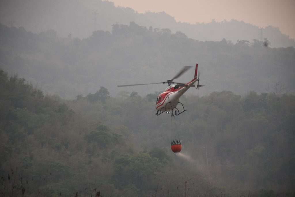 ทั้งนี้ จากรายงานของศูนย์ปฏิบัติการพื้นที่คลองหลวง ระบุว่า อากาศยานแบบ AS350 หมายเลข 1110 ได้เข้าปฏิบัติภารกิจสนับสนุนการดับไฟป่าในพื้นที่อุทยานแห่งชาติเอราวัณ โดยเฉพาะบริเวณหัวน้ำตกเอราวัณ (ชั้น 7) ซึ่งแม้ไม่ปรากฏจุดความร้อนจากดาวเทียม แต่พบการเกิดไฟป่าจริง และมีแนวโน้มลุกลามรุนแรง เนื่องจากมีเชื้อเพลิงสะสมจำนวนมาก ทำให้ไฟลุกลามข้ามแนวกันไฟ และไหลขึ้นพื้นที่สูงเข้าใกล้แหล่งท่องเที่ยวและที่ทำการอุทยาน ส่งผลกระทบต่อประชาชนและนักท่องเที่ยวในพื้นที่