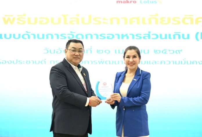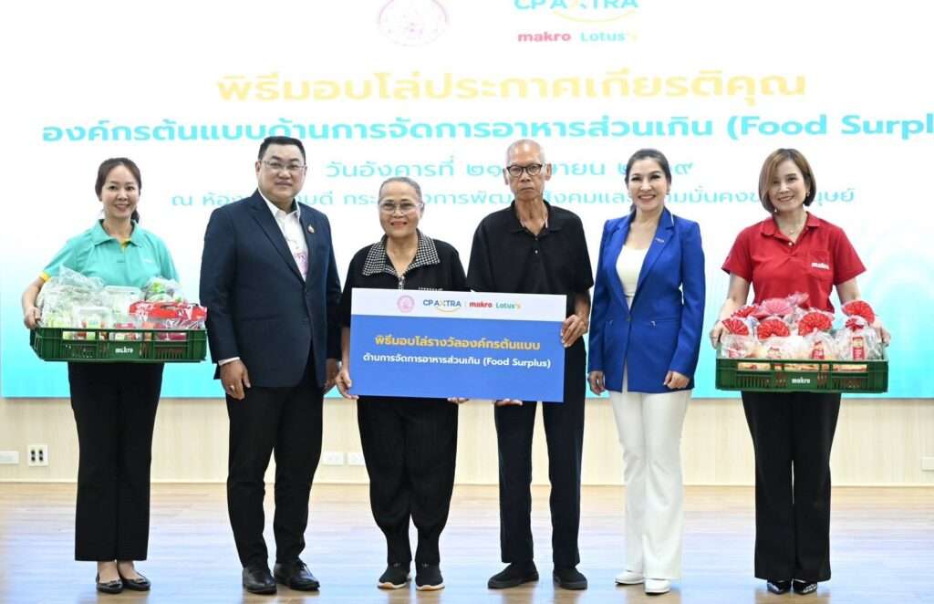 กระทรวงการพัฒนาสังคมและความมั่นคงของมนุษย์, (พม.) วันที่ 21 เมษายน – กรมกิจการผู้สูงอายุ (ผส.) จัดพิธีมอบโล่ประกาศเกียรติคุณแก่ บริษัท ซีพี แอ็กซ์ตร้า จำกัด (มหาชน) ในฐานะ “องค์กรต้นแบบด้านการจัดการอาหารส่วนเกิน (Food Surplus)” จากความสำเร็จในการขับเคลื่อนโครงการ “กินได้ ไม่ทิ้งกัน” ที่นำอาหารส่วนเกินคุณภาพดีจากแม็คโคร และโลตัสทั่วประเทศ ส่งต่อถึงผู้สูงอายุ และกลุ่มเปราะบางอย่างเป็นระบบ โดยมี นางศิริพร เดชสิงห์ ประธานเจ้าหน้าที่บริหารสายงานความยั่งยืนและสื่อสารองค์กร เป็นผู้แทนรับมอบ พร้อมด้วย นางสาวกอบกุล กวั่งซ้วน ผู้เชี่ยวชาญเฉพาะด้านผู้สูงอายุ นางพัชรมณฑ์ ปิติปัญญากุล ผอ.กองส่งเสริมสวัสดิการ และคุ้มครองสิทธิผู้สูงอายุ คณะผู้บริหาร ข้าราชการ เจ้าหน้าที่ และผู้แทนผู้สูงอายุจากศูนย์พัฒนาการจัดสวัสดิการสังคมผู้สูงอายุจังหวัดปทุมธานี เข้าร่วม