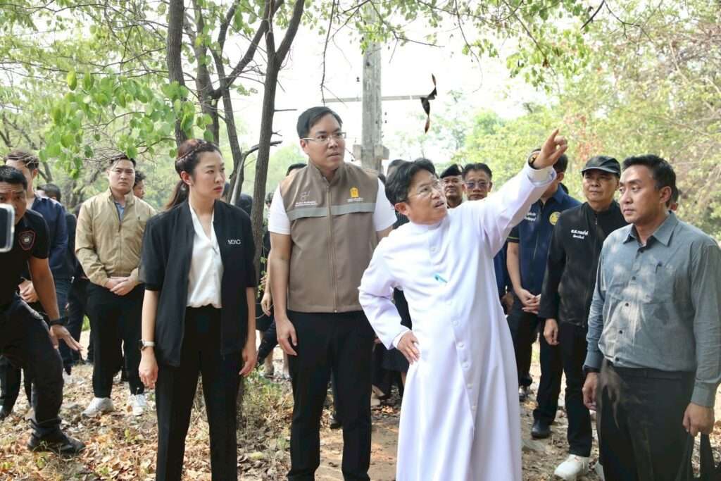 กาญจนบุรี, วันที่ 21 เมษายน – นางสาวปิยะรัฐชย์ ติยะไพรัช รัฐมนตรีช่วยว่าการกระทรวงเกษตรและสหกรณ์ พร้อมด้วย นายอัครนันท์ กัณณ์กิตตินันท์ รัฐมนตรีช่วยว่าการกระทรวงศึกษาธิการ เดินทางไปที่โรงเรียนดรุณากาญจนบุรี เพื่อตรวจติดตามสถานการณ์ไฟป่า หมอกควัน และฝุ่นละอองขนาดเล็ก PM2.5 ที่ส่งผลกระทบต่อประชาชนในหลายพื้นที่ โดยนางสาววริษฐา สงวนเสริมศรี ผวจ.กาญจนบุรี มอบหมายให้ นายวุฒิพงษ์ สุภัควนิช และนายสิทธิวีร์ วรรณพฤกษ์ รองผู้ว่า พร้อมด้วยส่วนราชการที่เกี่ยวข้อง ร่วมบรรยาย