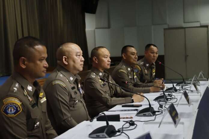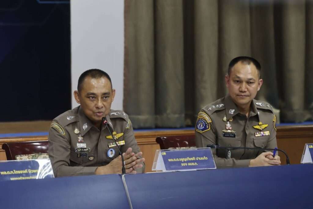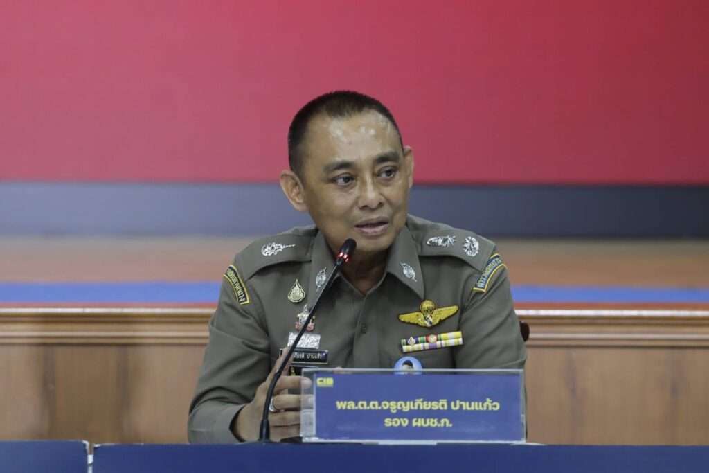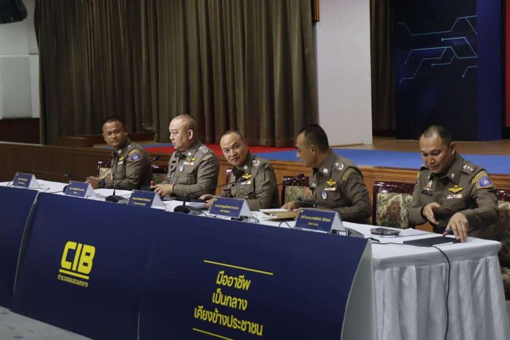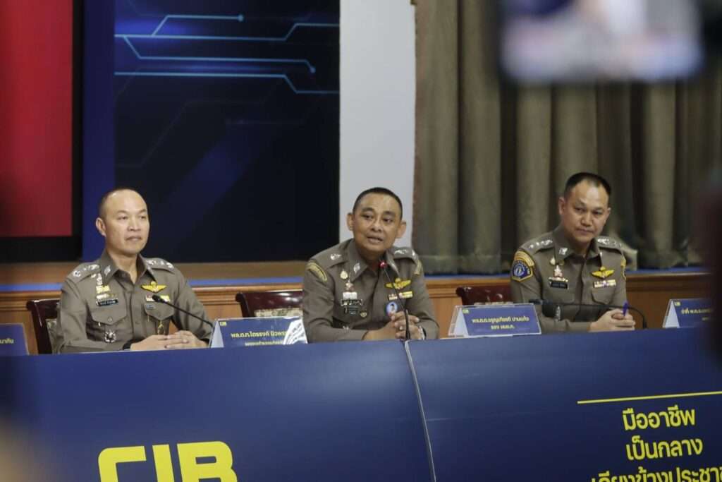 วันที่ 22 เมษายน 2569 ที่อาคารประชาอารักษ์ กองบังคับการปราบปราม (บก.ป.) พล.ต.ท.ไตรรงค์ ผิวพรรณ รองจเรตำรวจแห่งชาติ และในฐานะโฆษกสำนักงานตำรวจแห่งชาติ พร้อมด้วย พล.ต.ท.ณัฐศักดิ์ เชาวนาศัย ผบช.ก., พล.ต.ต.จรูญเกียรติ ปานแก้ว รอง ผบช.ก., พ.ต.อ.ปทักข์ ขวัญนา รอง ผบก.ป. และ ว่าที่ พ.ต.อ.เจตนิพัทธ์ ศิริวัฒน์ ผกก.1 บก.ป. ร่วมกันแถลงผลการจับกุมขบวนการเรียกรับผลประโยชน์จำนวน 2.5 ล้านบาท ภายในห้องกัก ตม.สวนพลู