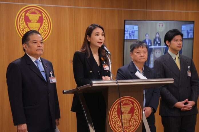 นางสาวศิริกัญญา กล่าวต่อไปว่า ถึงแม้ปัจจุบันหนี้สาธารณะ ณ เดือน ก.พ. 2569 จะอยู่ที่ 66% แต่รัฐบาลยังมีแผนกู้เพื่อชดเชยการขาดดุลงบประมาณปี 2569 อีกเกือบ 5 แสนล้านบาท ซึ่งจะทำให้หนี้สาธารณะต่อจีดีพีพุ่งไปที่ 67% และหากมีการออก พ.ร.ก. กู้เพิ่มอีก 5 แสนล้านบาท หนี้สาธารณะจะทะลุเพดาน 70% ทันที ดังนั้นก่อนที่ ครม. จะมีมติเงินกู้ รัฐบาลต้องประกาศขยายเพดานหนี้อย่างแน่นอน จึงไม่เข้าใจว่าเหตุใดรัฐบาลถึงยังปากแข็งปฏิเสธเรื่องนี้ต่อประชาชน