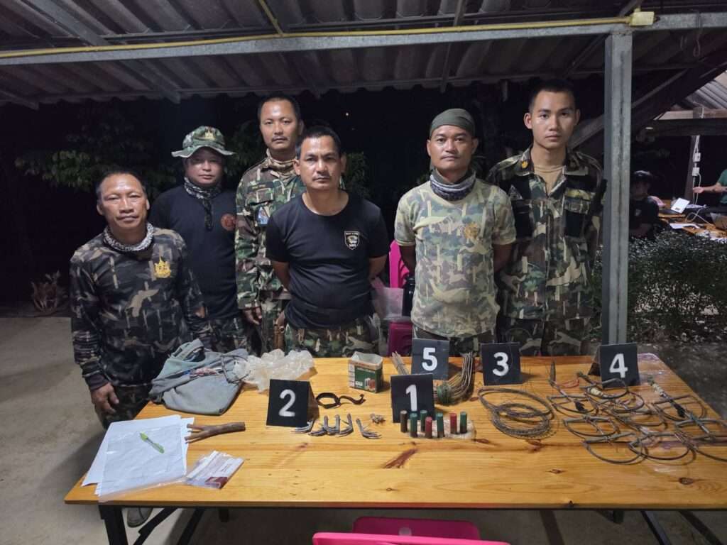 นอกจากนี้ในพื้นที่ใกล้เคียง เจ้าหน้าที่ยังได้เข้าตรวจสอบบ้านพักอีกหนึ่งหลังที่ไม่ปรากฏเจ้าของ ซึ่งพบพยานหลักฐานสำคัญที่ชี้ชัดถึงการลักลอบล่าสัตว์ป่าอย่างรุนแรง ประกอบด้วย กระสุนปืนลูกซอง 7 นัด ตีนไก่ป่า 5 ชิ้น คลึงต่อไก่ กับดักวงเดือน และครืนดักนกจำนวนมาก จึงได้บันทึกไว้เป็นหลักฐานเพื่อสืบสวนหาตัวผู้กระทำผิดมาดำเนินคดีตามกฎหมาย