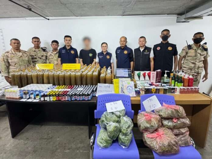 ฝ่ายปกครองบุกจับร้านกัญชาย่านไทรม้า หลังถูกร้องเรียนหนัก ลอบขายน้ำกระท่อม-บุหรี่-ยา ผิดกฎหมายซ้ำซาก ยึดของกลางจำนวนมาก