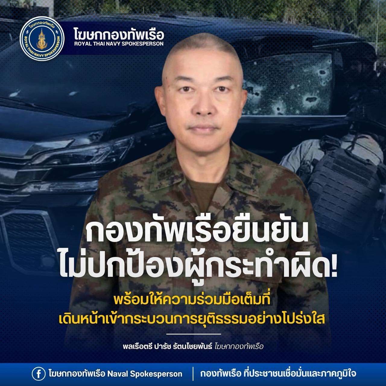 โฆษกกองทัพเรือขอเรียนว่า ขณะนี้ยังอยู่ในขั้นตอนการสอบสวนของเจ้าพนักงาน โดยกองทัพเรือพร้อมให้ความร่วมมืออย่างเต็มที่กับเจ้าหน้าที่ตำรวจและหน่วยงานในกระบวนการยุติธรรม เพื่อให้ข้อเท็จจริงปรากฏอย่างชัดเจน และยืนยันว่าจะดำเนินการทุกอย่างภายใต้หลักนิติธรรม ความยุติธรรม และความรับผิดชอบต่อสังคม