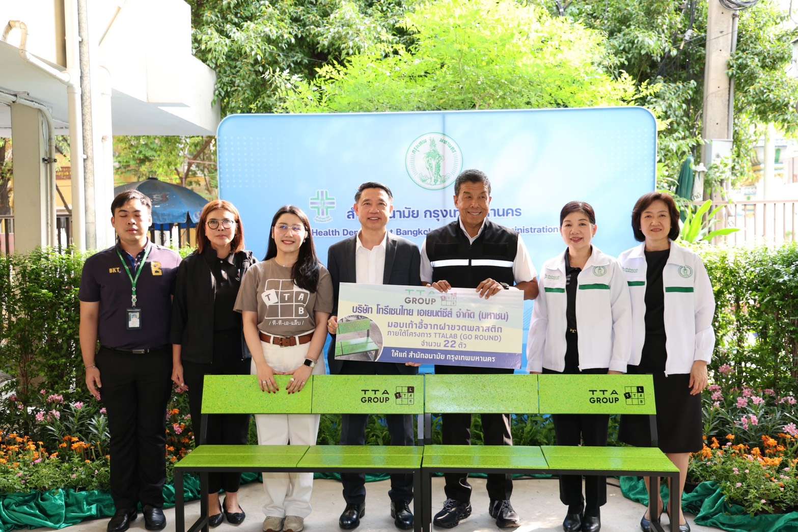 (28 เม.ย.69) เวลา 08.30 น. นายชัชชาติ สิทธิพันธุ์ ผู้ว่าราชการกรุงเทพมหานคร รับมอบเก้าอี้จากฝาขวดพลาสติก ภายใต้โครงการ TTALAB (GO ROUND) จำนวน 22 ตัว มูลค่า 162,000 บาท จากนายสมชาย อภิญญานุกุล ผู้ช่วยกรรมการผู้จัดการใหญ่ สายงานทรัพยากรบุคคลบริษัท โทรีเซนไทย เอเยนต์ซีส์ จำกัด (มหาชน) เพื่อส่งมอบให้แก่ สำนักอนามัย กรุงเทพมหานคร