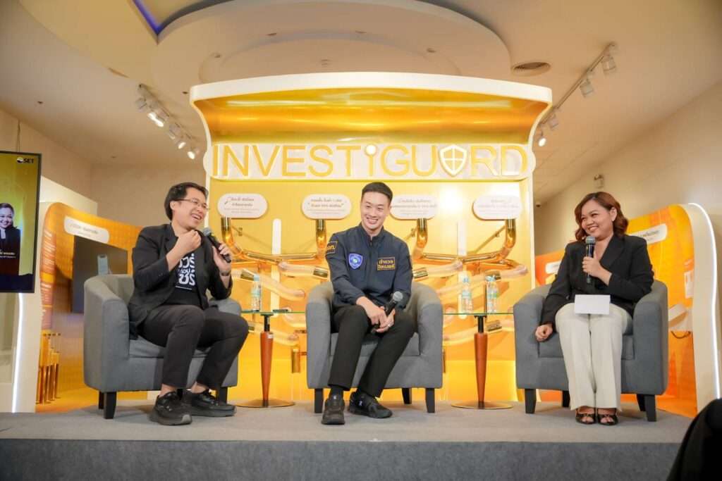 ในงานเดียวกันได้มีการจัดงานเสวนาหัวข้อ “INVESTIGUARD : รู้ทันภัยหลอกลงทุน” โดย พ.ต.ท. พากฤต กฤตยพงษ์ สารวัตรกลุ่มงานรักษาความมั่นคงปลอดภัยทางไซเบอร์ กองบัญชาการตำรวจสืบสวนสอบสวนอาชญากรรมทางเทคโนโลยี และคุณพิรพล อนุตรโสตถิ์ ผู้จัดการศูนย์ชัวร์ก่อนแชร์ สำนักข่าวไทย อสมท. เพื่อร่วมถ่ายทอดความรู้และประสบการณ์เกี่ยวกับภัยหลอกลงทุน ให้ผู้สนใจ ผู้ลงทุนทั่วไปด้วย