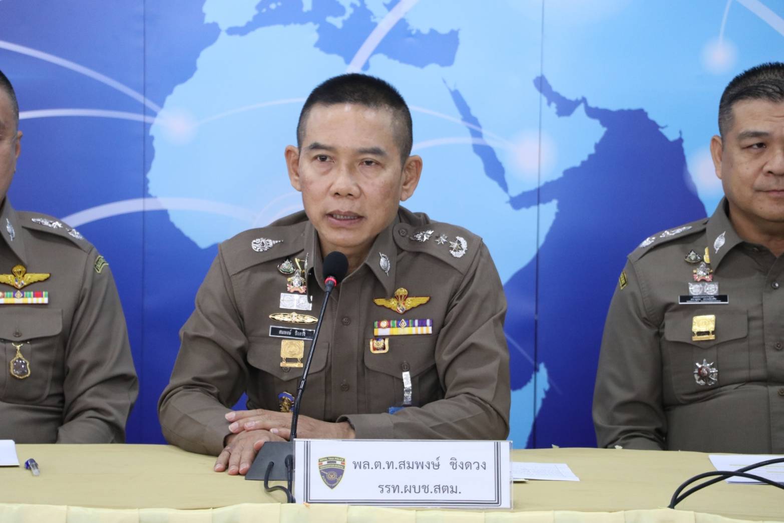 วันอังคารที่ 9 กรกฎาคม 2562 เวลา 10.30 น.ณ ห้องแถลงข่าวชั้นล่างอาคารจอดรถ บช.สตม.สวนพลู พลตำรวจโท สมพงษ์ ชิงดวง รักษาราชการแทนผู้บัญชาการสำนักงานตรวจคนเข้าเมือง (รรท.ผบช.สตม.) พร้อมด้วย พลตำรวจตรี อิทธิพล อิทธิสารรณชัย,พลตำรวจตรี สรายุทธ สงวนโภคัย รองผู้บัญชาการสำนักงานตรวจคนเข้าเมือง (รองผบช.สตม.),พลตำรวจตรี พนัญชัย ชื่นใจธรรม ผู้บังคับการกองบังคับการสืบสวนสอบสวน กองบัญชาการสำนักงานตรวจคนเข้าเมือง (ผบก.สส.บช.สตม.),พ.ต.อ.วิญญู อำนวยสมบัติ รอง ผบก.สส.สตม.