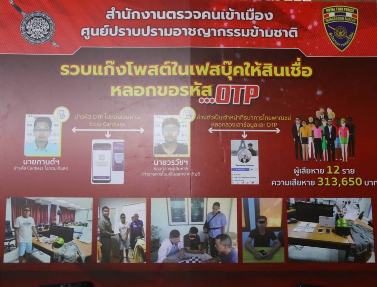สตม.รวบ 2 หนุ่มอ้างตัวเป็นเจ้าหน้าที่สินเชื่อของธนาคาร หลอกขอข้อมูลส่วนตัว แล้วใช้แอปโอนเงินออนไลน์โอนเงินของผู้เสียหายเข้าบัญชีที่เตรียมไว้ พบผู้เสียหายมากถึง 12 คน