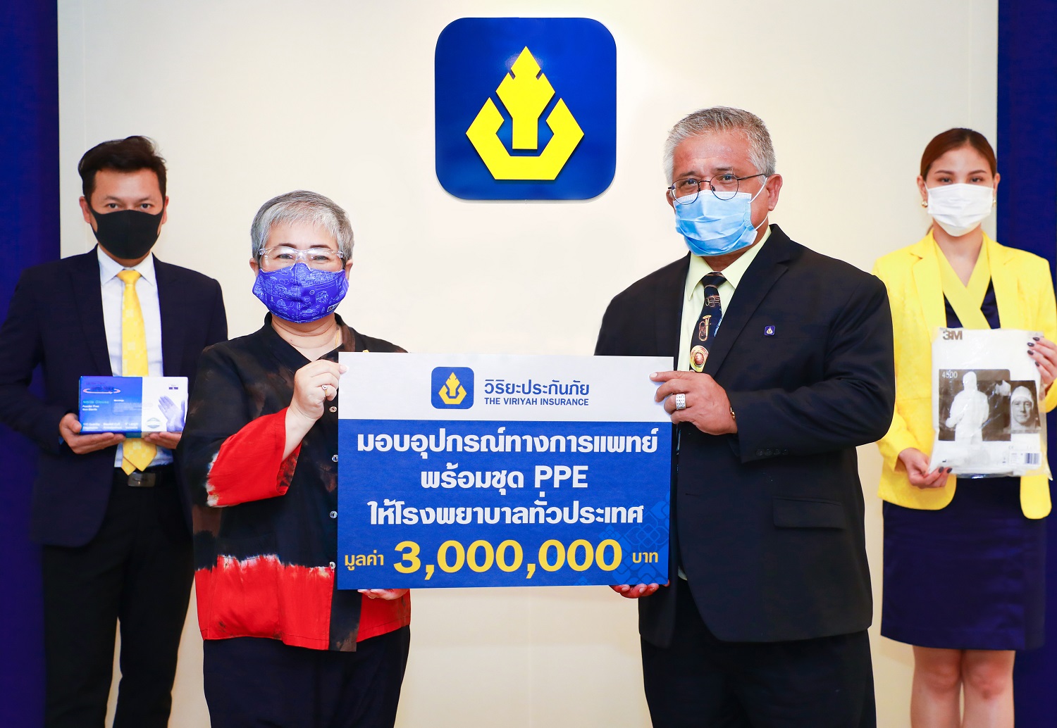 บริษัท วิริยะประกันภัย จำกัด (มหาชน) โดยนางสาวกานดา วัฒนายิ่งสมสุข ที่ปรึกษาฝ่ายการตลาดผู้ผลิตและผู้แทนจำหน่ายรถยนต์ และนายสุวัฒน์ สุขสัมฤทธิ์ ผู้จัดการฝ่ายสื่อสารองค์กร เป็นผู้แทนส่งมอบ ชุดป้องกันภัยส่วนบุคคล (Personal Protective Equipment หรือ PPE) พร้อมอุปกรณ์ป้องกันเสริมสำหรับบุคลากรทางการแพทย์มูลค่า 3,000,000 บาท ให้โรงพยาบาลรัฐ ทั้งนี้สาขาและศูนย์ปฏิบัติการสินไหมทดแทนในแต่ละพื้นที่จะได้นำไปส่งมอบให้กับโรงพยาบาลท้องถิ่นทั่วประเทศ ทางบริษัทฯ ขอเป็นกำลังใจให้กับบุคลากรทางการแพทย์ที่ทำงานอย่างหนัก ทุ่มเทแรงกาย แรงใจ และเสียสละ เพื่อให้ทุกคนปลอดภัย และ ขอให้ประเทศไทยผ่านช่วงเวลาที่ยากลำบากนี้ไปได้โดยเร็ว