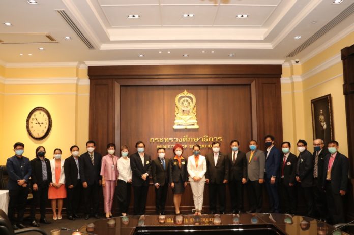 วันที่ 30 เม.ย.63 : ดร.กนกวรรณ วิลาวัลย์ รัฐมนตรีช่วยว่าการกระทรวงศึกษาธิการ (รมช.ศธ.) เป็นประธานการประชุม “การนำเสนอข้อมูลของพันธมิตรเพื่อความร่วมมือในการจัดการเรียนการสอน Online ของ สช.” โดยมี ดร.พะโยม ชิณวงศ์ ประธานคณะทำงานขับเคลื่อนนโยบายรัฐมนตรีช่วยว่าการกระทรวงศึกษาธิการ ดร.อรรถพล ตรึกตรอง เลขาธิการคณะกรรมการส่งเสริมการศึกษาเอกชน (เลขาธิการ กช.) ดร.ศุภเสฏฐ์ คณากูล นายกสมาคมสถานศึกษาเอกชนจังหวัดนครราชสีมา ผู้บริหาร สช. บริษัท สำนักพิมพ์ และสถาบันการศึกษาที่เป็นพันธมิตรของ สช. เข้าร่วมประชุม ณ ห้องประชุมราชวัลลภ อาคารราชวัลลภ กระทรวงศึกษาธิการ