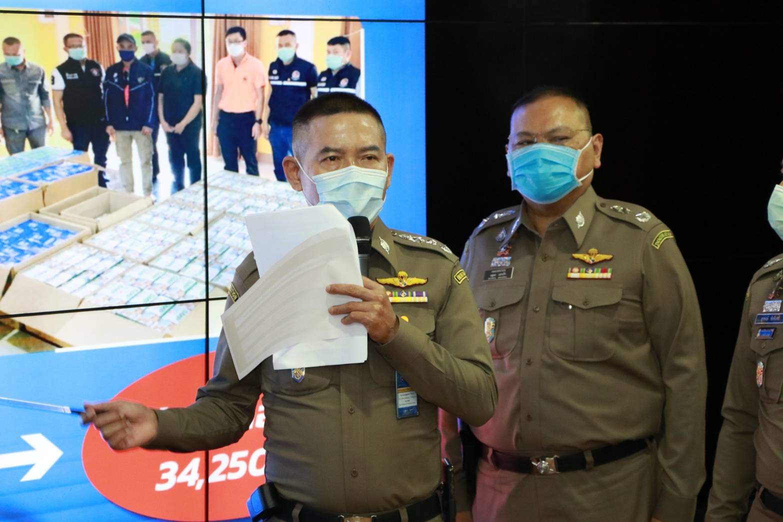 วันที่ 17 เม.ย.63 เวลา 10.30 น. ณ ห้องศูนย์ TIC ชั้น 4 อาคาร 1 สตม.(สวนพลู) สาธร กทม. : พล.ต.ท.สมพงษ์ ชิงดวง ผบช.สตม. พร้อมด้วย พล.ต.ต.สุรพงษ์ ชัยจันทร์,พล.ต.ต.ณัฐพล แสวงกิจ รอง ผบช.สตม.,พล.ต.ต.ชำนาญ ชำนาญเวช ผบก.ตม 5,พ.ต.อ.เอกกร บุษบาบดินทร์ รอง ผบก.ตม.5,พ.ต.อ.อรุษ แสงจันทร์ รอง ผบก.ตม.6,พ.ต.อ.เศรษฐภัทร ณ สงขลา ผกก.สส.บก.ตม.5,พ.ต.อ.ภคยศ ทนงศักดิ์ ผกก.สส.บก.ตม.6,พ.ต.อ.ไพฑูรย์ กุลัตถ์นาม รอง ผบก.ฯ ปฏิบัติราชการ บก.ตม.6,พ.ต.อ.ศุภฤกษ์ พันธ์โกศล ผกก.ตม.จ.สุราษฎร์ธานี,พ.ต.อ.สังคม ตัดโส ผกก.ตม.จ.ตาก และ พ.ต.ท.นพรัช ยังดำรง สว.ตม.จ.พะเยา ร่วมแถลงข่าวผลการจับกุมอาชญากรรมข้ามชาติ ดังนี้