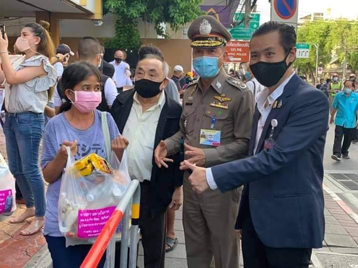 วันที่ 29 พ.ค.63 เวลา 16.00 น. : พล.ต.ต.เมธี รักพันธุ์ ผบก.น.6 พร้อมด้วย พ.ต.อ.สรเสริญ ใช้สถิตย์ รอง ผบก.น.6,ดร.พีรวัฒน์ สุรเศรษฐ ที่ปรึกษารองผบ.ตร. ประธานกต.ตร.กทม.(ภาคประชาชน) รองประธานที่ปรึกษาบช.ทท.-บก.สปพ.(191)-บก.น.6,อ.เปี่ยมเดช ปิ่นโฑละ ประธาน อนุ กต.ตร. บก.น.6,นายกิตติพงษ์ เตรัตนชัย ประธานที่ปรึกษา กต.ตร.บก.น.6,คณะกต.ตร.บก.น.6 และนักธุรกิจในพื้นที่ ร่วมแจกจ่ายอาหารและเครื่องอุปโภคบริโภค เครื่องดื่ม ขนม ฯลฯ ตาม โครงการ “รับอาหารฟรีครับ” และ “ตู้ปันสุข” ช่วยเหลือชาวบ้านที่ได้รับความเดือดร้อนจากสถานการณ์การแพร่ระบาดของเชื้อไวรัสโคโรน่า 2019 ณ บริเวณหน้า บก.น.6.