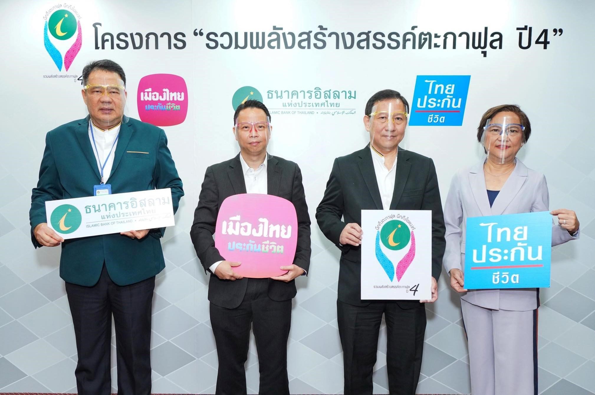 ธนาคารอิสลามแห่งประเทศไทย (ไอแบงก์) ร่วมกับ 2 พันธมิตรธุรกิจประกัน เดินหน้าเปิดโครงการรวมพลังสร้างสรรค์ตะกาฟุลต่อเนื่องเป็นปีที่ 4 เพื่อส่งมอบผลิตภัณฑ์ประกันภัยตะกาฟุลหลากหลายรูปแบบที่สอดรับกับความต้องการของพี่น้องมุสลิมและลูกค้าทั่วไป ทั้งในด้านการออมเงิน การสร้างความอุ่นใจในการคุ้มครองชีวิต และความมั่นคงในวัยเกษียณ โดยมีนายวุฒิชัย สุระรัตน์ชัย กรรมการและผู้จัดการธนาคาร และนายวิสุทธ์ บริบูรณ์ รองกรรมการผู้จัดการ ผู้บริหารสายงานธุรกิจรายย่อย และปฏิบัติหน้าที่ผู้ช่วยกรรมการผู้จัดการ ผู้บริหารสายงานธุรกิจ ธนาคารอิสลามแห่งประเทศไทย พร้อมด้วย นายไพฑูรย์ ไกรอมร รองกรรมการผู้จัดการ บริษัท เมืองไทยประกันชีวิต จำกัด (มหาชน) และนางฉวีวรรณ ปิยรัตนเสถียร Head of Government Bancassurance บริษัท ไทยประกันชีวิต จำกัด (มหาชน) ร่วมพิธีเปิดโครงการ เมื่อเช้าวันที่23 มิถุนายน 2563 ณ ห้องประชุมใหญ่ ชั้น 23 สำนักงานใหญ่ ธนาคารอิสลามแห่งประเทศไทย