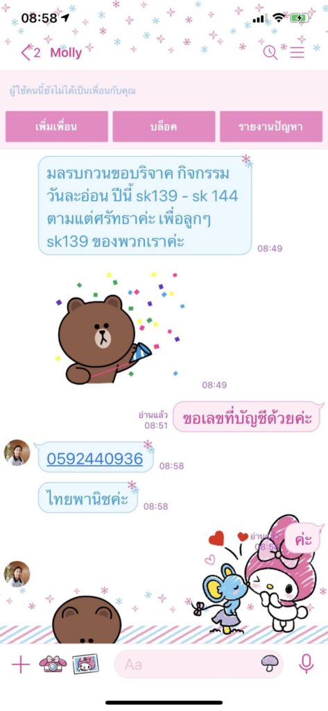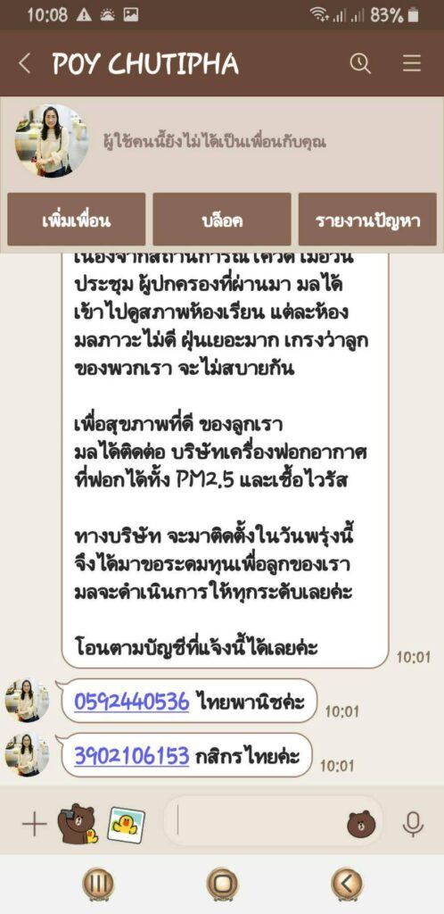 โดยคนร้ายก่อเหตุต่อเนื่องมานานหลายเดือน เรายุบแล้วตั้งกลุ่มไลน์ขึ้นใหม่ก็ยังตามมาก่อเหตุอีก แม้จะไม่มีใครในกลุ่มหลงเชื่อก็ตามแต่สร้างความเดือดร้อนรำคาญสมาชิกในกลุ่มหลายคนได้ไปแจ้งความ สน.ท้องที่แล้ว วันนี้จึงรวมตัวกันมาแจ้งความ ปอท.ให้ช่วยสืบสวนสอบสวนด้วยจะเอาผิดให้ถึงที่สุด