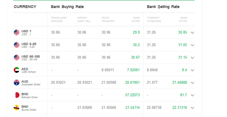 ดอลลาร์สหรัฐ รับซื้อ 30.67 บาท ขายออก 31.15 บาท