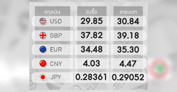 ดอลลาร์สหรัฐ รับซื้อ 29.85 บาท ขายออก 30.84 บาท