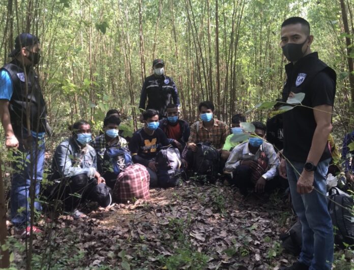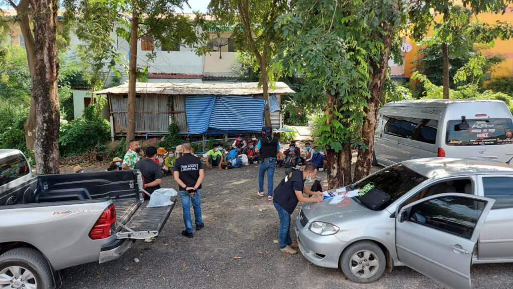 สืบเนื่องจากเมื่อวันที่ 8 กันยายน 2563 เวลาประมาณ 05.00 น. ศูนย์ปราบปรามคนร้ายข้ามชาติฯ ทราบว่าแรงงานต่างด้าวได้ลักลอบเข้ามาผ่านช่องทางธรรมชาติ บริเวณหน้าวัดหน้างามเขตติดต่อตาพระยา จ.สระแก้ว และหลบซ่อนตัวในป่าบริเวณดังกล่าว ต่อมาเวลา 18.00 น. ได้มีรถยนต์กระบะ 2 คัน รับกลุ่มคนดังกล่าวและสัมภาระเดินทางเข้ามา บริเวณพื้นที่ตอนใน จนกระทั่งมาถึงบริเวณป่ายูคาลิปตัส เขาหินซ้อน ต.เกาะขนุน อ.พนมสารคาม จ.ฉะเชิงเทรา และรถยนต์กระบะ 2 คันได้ทิ้งกลุ่มคนต่างด้าวให้หลบซ่อนตัวในบริเวณดังกล่าวแล้วหลบหนีไป จากนั้นเจ้าหน้าที่ชุดสืบสวนจึงได้ ติดตามค้นหาจึงพบกลุ่มบุคคลต่างด้าวดังกล่าวหลบซ่อนตัวอยู่ เป็นชาย 13 คน หญิง 9 คน และเด็กชาย 1 คน จากการสอบถามทราบว่าจะมีผู้มารับต่างด้าวกัมพูชา ในวันที่ 9 กันยายน 2563 เวลาประมาณ 08.00 น. เพื่อนำไปส่งให้กับนายจ้าง