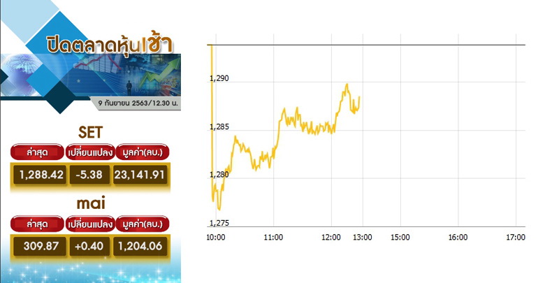 หุ้นเช้าปิดลบ 5.38 จุดวอลุ่ม 2.3 หมื่นล้าน
