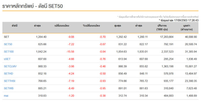 หุ้นไทยปิดลบ 9.08 แตะ 1,284.40 จุด