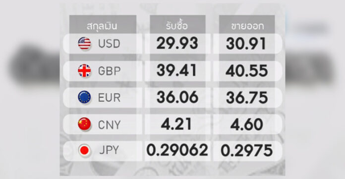 และเงินเยนของญี่ปุ่นอยู่ที่ 0.2975 บาทต่อเยน