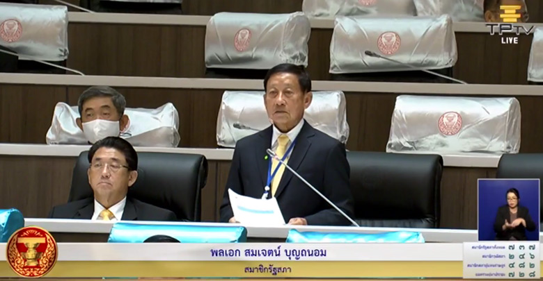 พล.อ.สมเจตน์ บุญถนอม ส.ว. อภิปรายว่าการยกเลิกรัฐธรรมนูญฉบับเก่าไปร่างฉบับใหม่เป็นประวัติศาสตร์ที่วนเวียนซ้ำซากไม่รู้จบสิ้น เหตุการณ์ครั้งนี้เคยเกิดในสมัยปี 2555 สมัย น.ส.ยิ่งลักษณ์ ชินวัตร เป็นนายกรัฐมนตรี เพื่อแก้ไขรัฐธรรมนูญปี 2550 เป็นเรื่องทำนองเดียวกับปัจจุบัน ที่พรรคฝ่ายค้านและพรรคร่วมรัฐบาลเสนอ โดยการแก้ไขครั้งนี้ผู้เสนอญัตติให้เหตุผลว่ารัฐธรรมนูญฉบับนี้มีผลต่อโครงสร้างสถาบันในสังคมและส่งผลให้เกิดความขัดแย้ง จึงต้องแก้ไขเพื่อระงับความขัดแย้ง ตนเห็นว่า ในสมัยรัฐบาล น.ส.ยิ่งลักษณ์ เป็นยุคที่รัฐบาลกุมเสียงข้างมากได้ และแก้ไขที่มาของ ส.ว. และให้ ส.ว. เสนอแก้ไขปัญหาการยุบพรรคให้ ส.ส. เหมือนผลัดกันเกาหลัง เนื่องจากรัฐบาลกุมเสียงข้างมาก มีการรีบเร่งแก้ไขที่มาของ ส.ว. จนเกิดเหตุการณ์วุ่นวาย ถูกประณามว่าเป็นเผด็จการรัฐสภา และเมื่อมีเหตุการณ์ที่ต้องร่างรัฐธรรมนูญปี 2560 ภาพเหตุการณ์นั้นก็ยังติดตา ตอนนี้การแก้ไขรัฐธรรมนูญต้องเห็นร่วมกันของทุกฝ่าย และการไปตัดเงื่อนไขสำคัญที่ต้องได้รับความเห็นชอบกับ ส.ว. 1 ใน 3 และ ส.ส.ฝ่ายค้าน 20% มันก็จะทำให้สภากลับไปเป็นสภาทาส ที่มีเผด็จการรัฐสภาเหมือนเดิม เสียงข้างมากไม่ฟังเสียงข้างน้อย หลายคนไปตำหนินายมีชัย ฤชุพันธ์ แต่ตนเห็นว่าต้องขอบคุณที่จะสร้างภาพพจน์ที่ดีของรัฐสภา ว่าแม้เสียงข้างน้อย 20% ก็สามารถยับยั้งการแก้ไขรัฐธรรมนูญไว้ได้