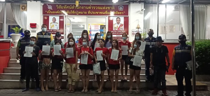 สืบเนื่องจากเจ้าหน้าที่ตำรวจตรวจคนเข้ามืองจังหวัดนนทบุรี ได้รับร้องเรียนว่าร้านที่ดังกล่าวมีการใช้แรงงานของบุคคลต่างด้าวทำงานโดยสงสัยว่าลักลอบเข้าเมืองและไม่มีใบอนุญาติทำงาน จึงได้นำกำลังลงพื้นที่ตรวจสอบ พบพนักงานบริการจำนวนมากกำลังเสริฟอาหารให้บริการกับลูกค้าคนไทยภายในสถานที่ดังกล่าว เจ้าหน้าที่จึงแสดงตัวเป็นเจ้าหน้าที่ตำรวจตรวจคนเข้าเมืองจังหวัดนนทบุรี เข้าขอตรวจสอบเอกสารและนำตัวส่งกองตรวจคนเข้าเมือง 1.Ms.NGUYEN THI HUONG อายุ 30 ปี สัญชาติเวียดนาม 2.Ms. PHAM THI XANH อายุ 37 ปี สัญชาติเวียดนาม 3.Ms. THI KHUYEN PHAM อายุ 29 ปี เวียดนาม 4.Ms.THI TUYET NGUYEN อายุ 21 ปี สัญชาติเวียดนาม 5.Ms.THI HONG NHUNG NGUYEN อายุ 19 ปี สัญชาตเวียดนาม 6.Ms.THI HANG HO อายุ 27 ปี สัญชาติเวียดนาม 7.Ms.THI THUY NGUYEN อายุ 28 ปี สัญชาติเวียดนาม 8.Ms.THI THAM NGUYEN อายุ 19 ปี สัญชาติเวียดนาม 9.Ms.THI THAM NGUYEN อายุ 31 ปี สัญชาติเวียดนาม 10.Ms.THI THUY TRUONG อายุ 26 ปี สัญชาติเวียดนาม 11.Ms.THI GIANG LE อายุ 26 ปี สัญชาติเวียดนาม 12.Ms.THI THO NGUYEN อายุ 48 ปี สัญชาติเวียดนาม13.นายเหงียน ฮาน อายุ 48 ปี สัญชาติเวียดนาม 14.Ms.NOY CHEMSAMONE อายุ 30 ปี สัญชาติลาว 15.Ms.DOUAN DAOANGKHANE อายุ 29 ปี สัญชาติลาว
