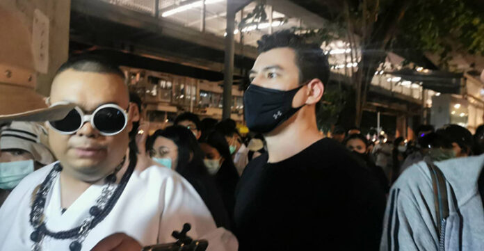 บรรยากาศการชุมนุมของกลุ่มคณะราษฎร บริเวณสี่แยกราชประสงค์ ถนนราชดำริ จนถึงขณะนี้ยังคงมีการปราศรัยจากแกนนำ ขณะที่มวลชนทอยเดินทางเข้าร่วมการชุมนุมอย่างต่อเนื่อง โดยล่าสุด นายวิญญู วงศ์สุรวัฒน์ หรือ จอน วิญญู และ นายณัฐพงษ์ เทียนดี หรือ พ่อแม่ แห่งรายการเจาะข่าวตื้น ได้เดินทางมาในพื้นที่เพื่อร่วมชุมนุมแล้ว โดย จอน วิญญู กล่าวสั้นๆว่า วันนี้มาสังเกตการณ์ และมาถ่ายทอดสด พูดคุยกับประชาชน โดยเชื่อว่าการชุมนุมจะเป็นไปด้วยความสงบเรียบร้อยปราศจากอาวุธ ซึ่งในระหว่างการลงพื้นที่ จอน วิญญู และทีมงานได้มีถ่ายทอดสดจาก FBlive ด้วย ซึ่งการปรากฏตัวของ จอน วิญญู และพ่อหมอ ได้มีผู้ชุมนุมส่งเสียงตระโกน ปรบมือให้กำลังใจและชูสัญลักษณ์ 3 นิ้ว ก่อนที่จะเดินเข้าไปในพื้นที่การชุมนุม
