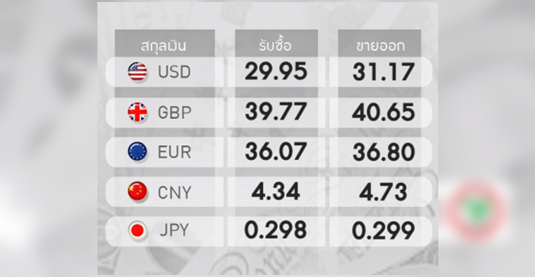 และเงินเยนของญี่ปุ่นอยู่ที่ 0.299 บาทต่อเยน