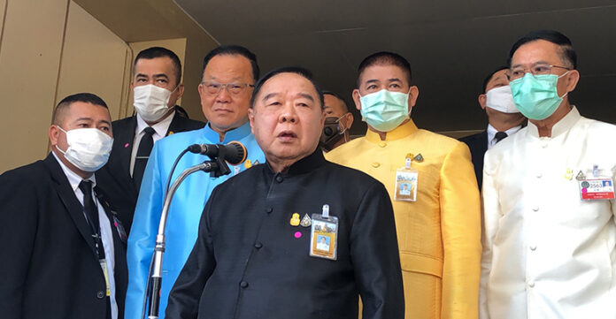 ทั้งนี้ นายกรัฐมนตรี จะสมัครเป็นสมาชิกพรรคพลังประชารัฐ เพื่อเดินหน้าทำงานการเมืองเต็มตัวหรือไม่ พล.อประวิตร กล่าวว่า ยังไม่ได้พูดคุยกับนายกรัฐมนตรี ก็คงต้องแล้วแต่ตัวนายกรัฐมนตรี และต้องไปถามนายกรัฐมนตรีเอง