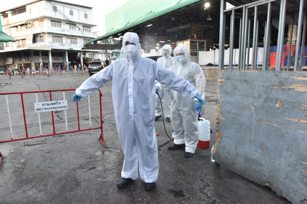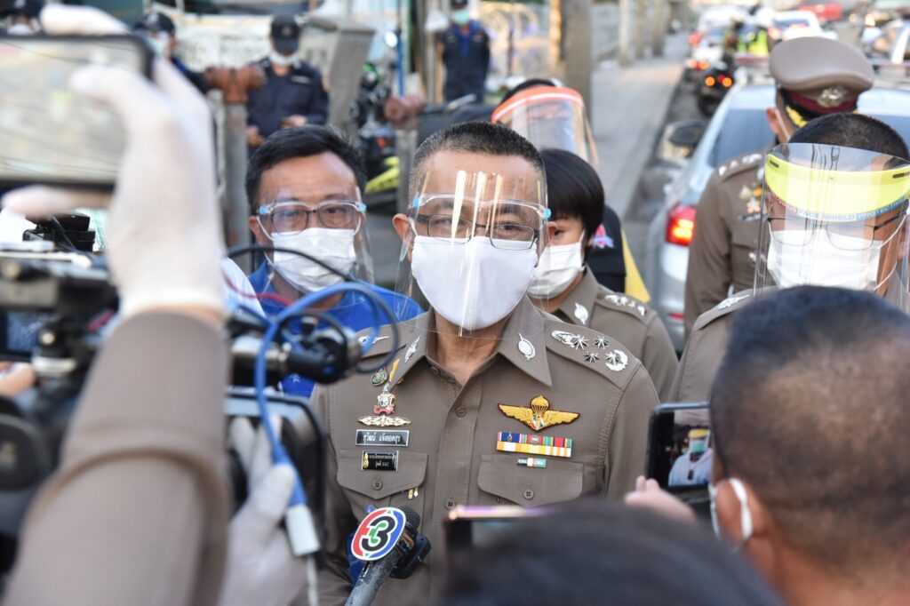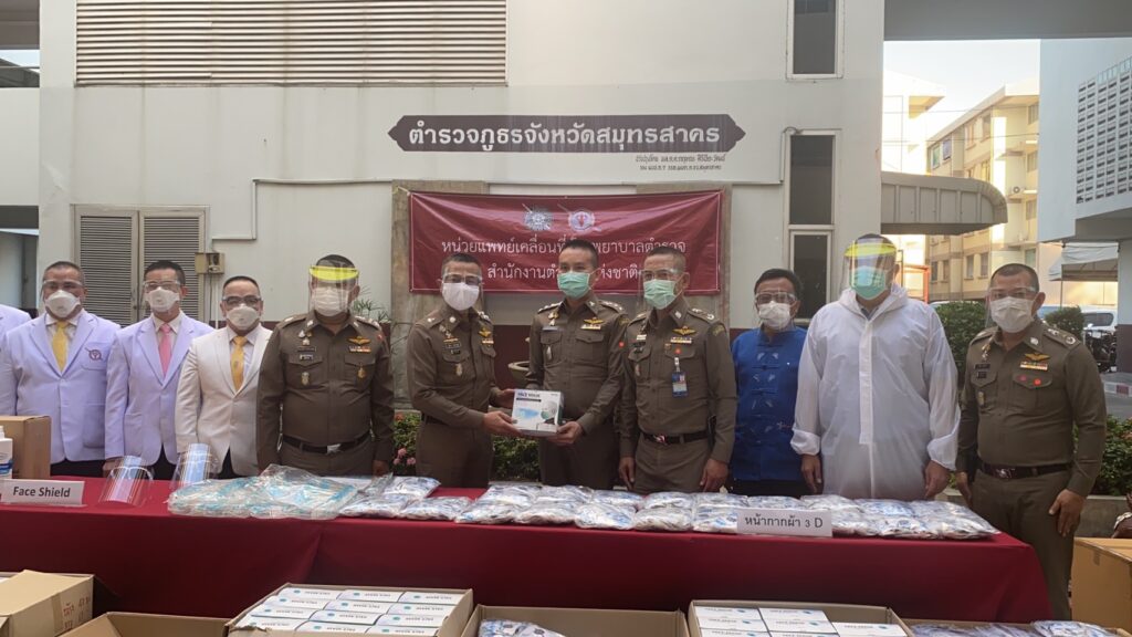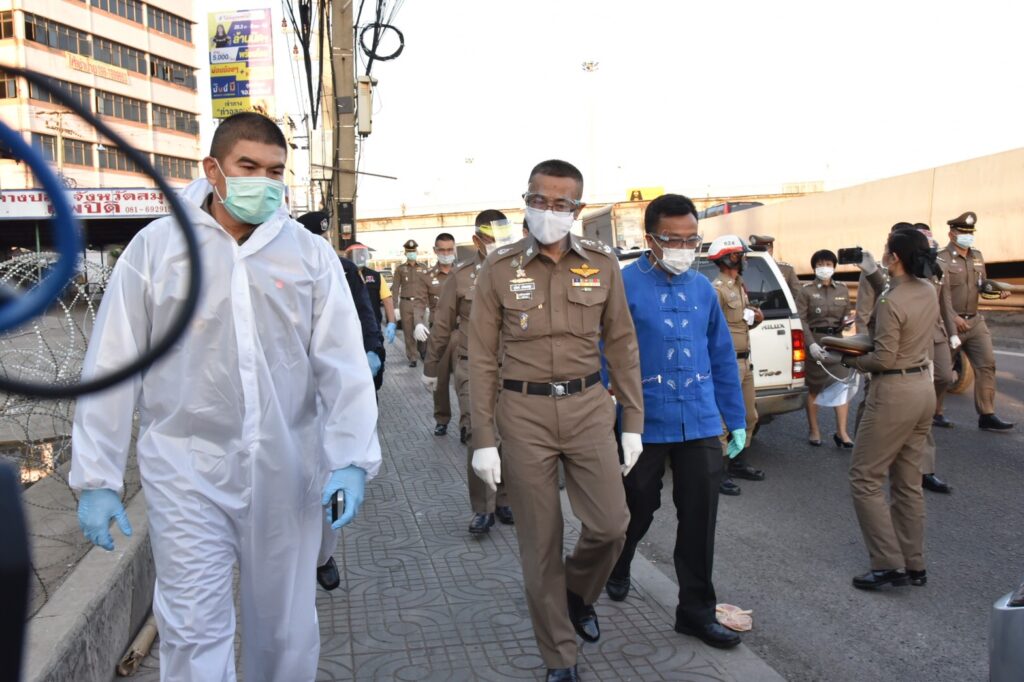 ต่อมา พล.ต.อ.สุวัฒน์ฯ ผบ.ตร.พร้อมด้วยคณะได้มอบอุปกรณ์ เช่น หน้ากากอนามัย แอลกอฮอล์เจล ถุงมือ และ face shield และได้ลงพื้นที่ตรวจเยี่ยมตลาดกลางกุ้งเพื่อดูแลความเรียบร้อยแก่พี่น้องประชาชน และสร้างขวัญกำลังแก่ผู้ปฏิบัติงานในพื้นที่อีกด้วย