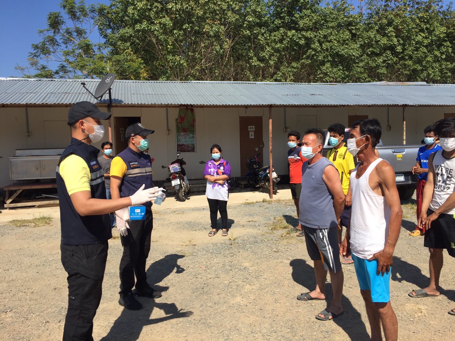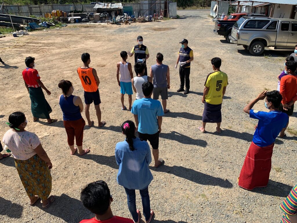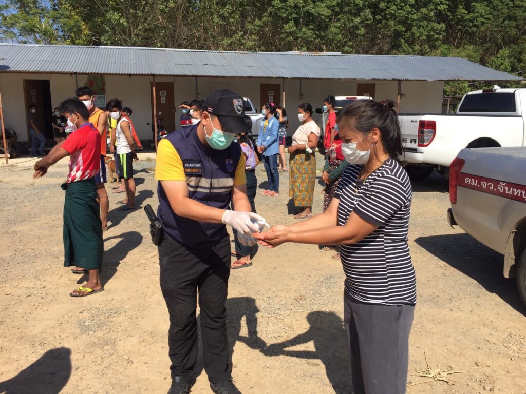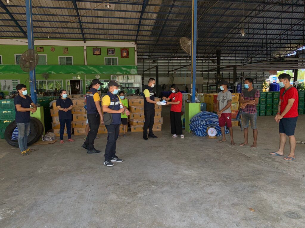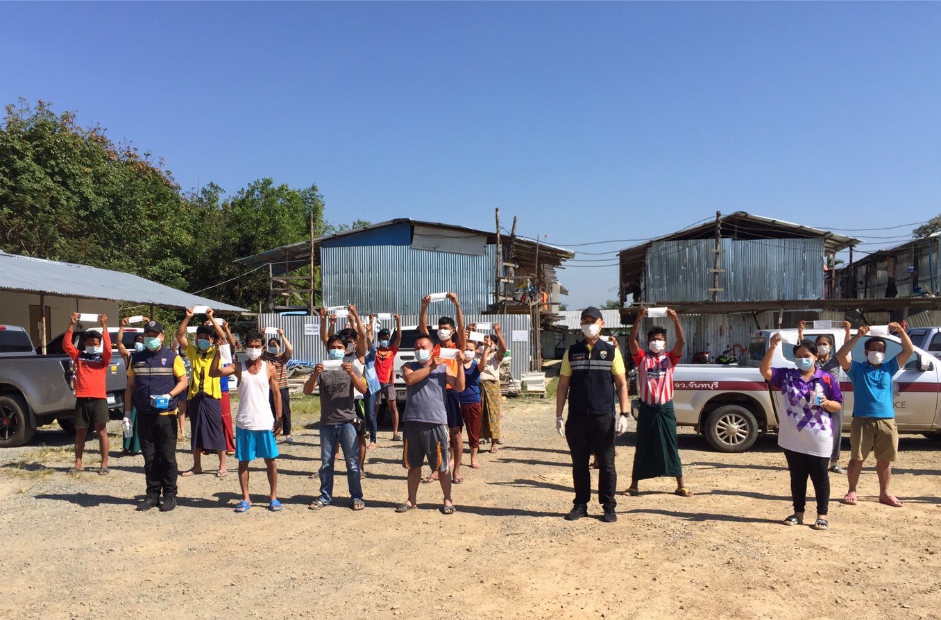วันนี้ (31 ธ.ค.63) ภายใต้การอำนวยการของ พ.ต.อ.เฉลิมชนม์ แหลมทอง ผกก.ตม.จว.จันทบุรี นำโดย พ.ต.ท.ศวัส โชติรณพัส รอง ผกก.ตม.จว.จันทบุรี พร้อมชุดสืบสวน ตม.จว.จังหวัดจันทบุรี ได้ออกพื้นที่ประชาสัมพันธ์กับนายจ้างสถานประกอบการ ที่มีเเรงงานต่างด้าวในพื้นที่จังหวัดจันทบุรี โดยขอความร่วมมือให้ช่วยกันป้องกันตนเองตามมาตราการป้องกัน COVID-19 ด้วยการใช้หน้ากากอนามัย เจลเเอลกอฮอล์ล้างมือ อย่างสม่ำเสมอ การเว้นระยะห่างตามหลัก social distancing และขอความร่วมมือให้เเรงงานต่างด้าวอยู่ในสถานประกอบการ ห้ามเคลื่อนย้ายแรงงานเข้า-ออกนอกพื้นที่จังหวัดจันทบุรี ตามประกาศของผู้ว่าราชการจังหวัดจันทบุรี พร้อมมอบหน้ากากอนามัยและเจลล้างมือให้กับเเรงงานต่างด้าวที่ขาดแคลน เพื่อป้องการการเเพร่ระบาดของเชื้อไวรัส Covid-19 ในพื้นที่จังหวัดจันทบุรี ตามนโยบายของรัฐบาลต่อไป