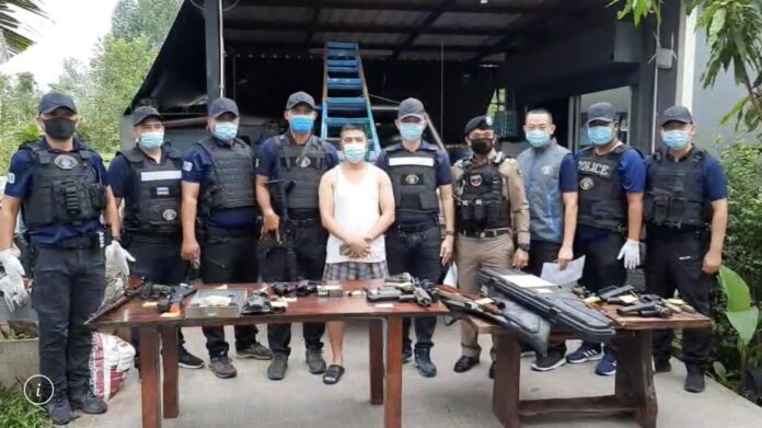เมื่อวันที่ 9 ม.ค. ที่ กองบังคับการปราบปราม (บก.ป.) พล.ต.ต.สุวัฒน์ แสงนุ่ม ผบก.ป. สั่งการให้ พ.ต.อ.วิระชาญ ขุนไชยแก้ว ผกก.5 บก.ป.พ.ต.ต.ปิยะพร เรียนสุทธิ์ สว.กก.5 บก.ป. นำกำลังจับกุมนายบัญชา เพ็ชรขุ้ม อายุ 45 ปี พร้อมของกลางอาวุธปืน M 16 จำนวน 1 กระบอก อาวุธปืนยาวติดลำกล้อง และไม่ติดลำกล้อง ขนาดต่างๆ จำนวนรวม 3 กระบอก อาวุธปืนสั้น 2 กระบอก และ เครื่องยุทธภัณฑ์ เครื่องกระสุน ชนิดต่างๆอีกหลายรายการ ได้ที่บริเวณบ้านพักแห่งหนึ่งในพื้นที่ ม. 8 ต.ขุนทะเล อ.เมือง จ.สุราษฎร์ธานี