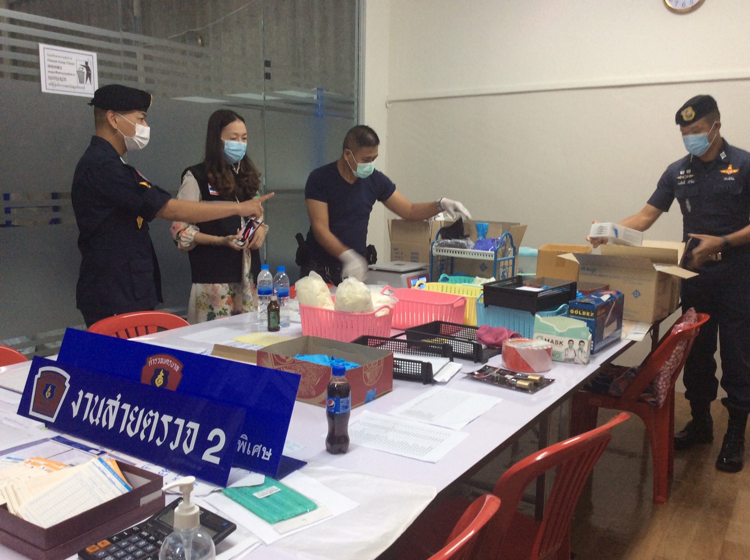ที่เกิดเหตุเป็นโกดังขนาดใหญ่ มีรั้วรอบขอบชิด ภายในดัดแปลงเป็นสถานที่เก็บอุปกรณ์ทางการแพทย์ อาทิ ถุงมือยาง เพื่อเตรียมส่งจำหน่ายให้กับลูกค้า เจ้าหน้าที่จึงแสดงตัวพร้อมกับตรวจยึดถุงมือทางการแพทย์ชนิดต่างๆ หลากหลายยี่ห้อ ไว้เป็นของกลางเพื่อนำมาทำการตรวจสอบอย่างละเอียดว่า ผ่านมาตรฐานตามที่กฎหมายกำหนดหรือไม่ ทั้งนี้ได้ทำการตรวจยึดถุงมือยางแพทย์จำนวนประมาณ 2,064,000 ชิ้น,กล่องบรรจุภัณฑ์ถุงมือยางจำนวนประมาณ 120,000 กล่อง,เครื่องซีลพลาสติก จำนวน 1 เครื่อง และเครื่องชั่งดิจิตอลจำนวน 2 เครื่อง รวมมูลค่ากว่า 150 ล้านบาท