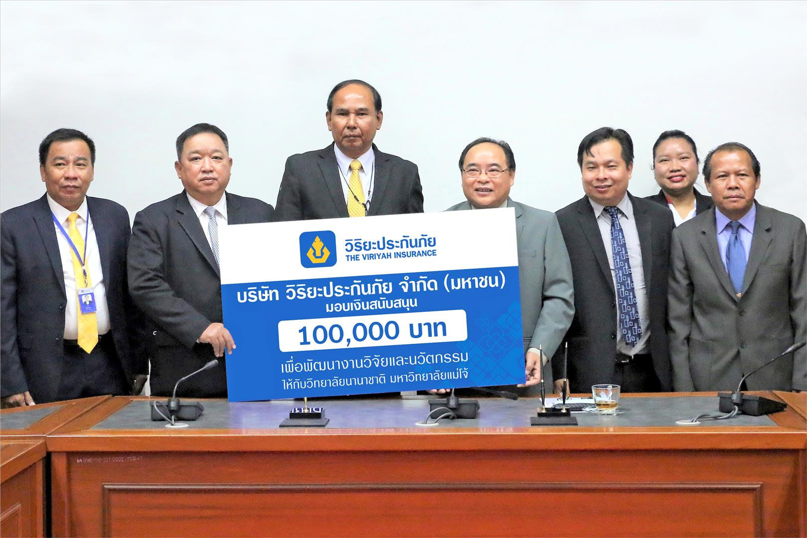รองศาสตราจารย์ ดร.วีระพล ทองมา อธิการบดี พร้อมด้วย ดร.ระพีพันธ์ แดงตันกี คณบดีวิทยาลัยนานาชาติ มหาวิทยาลัยแม่โจ้ รับมอบเงินจำนวน 100,000 บาท จากบริษัท วิริยะประกันภัย จำกัด (มหาชน) โดยมี นายประสิทธิ์ สุนะชูแสง ผู้จัดการฝ่ายปฏิบัติการภาค 1 (ภาคเหนือ) เป็นผู้แทนมอบ เพื่อสนับสนุนนวัตกรรมฆ่าเชื้อโควิด-19 “Nano 9 Silver Nano” รวมถึงสนับสนุนงานวิจัยและนวัตกรรมอื่นๆ ของวิทยาลัยนานาชาติ มหาวิทยาลัยแม่โจ้ จังหวัดเชียงใหม่