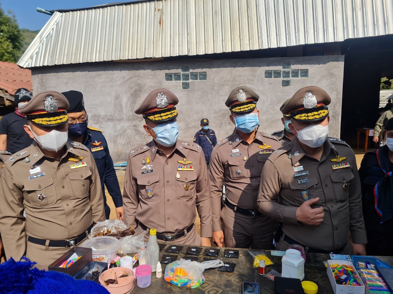 วันนี้ 22 ม.ค.64 พล.ต.ท.ชินภัทร สารสิน ผู้ช่วย ผบ.ตร. พร้อมด้วย พล.ต.ท.ประจวบ วงศ์สุข ผบช.ภ.5 พร้อมด้วย พล.ต.ต.วีรชน บุญทวี ผบก.สส.ภ.5, พล.ต.ต.พิเชษฐ จีระนันตสิน ผบก.ภ.จว.เชียงใหม่, นาย ไกรเลิศ ดาวเรือง ผอ.ป.ป.ส. ภาค 5, พ.ต.อ.พรศักดิ์ สุรสิทธิ์ รอง ผบก.ปส.4 บช.ปส., พ.ต.อ.พิศาล เอิบอาบ รอง ผบก.ขส. บช.ปส. ข้าราชการตำรวจ กก.2 ปส.3 บช.ปส. และเจ้าหน้าที่ ศพฐ.5 ได้ร่วมกันแถลงจับกุมขบวนการค้ายาเสพติดรายสำคัญในพื้นที่บ้านปางอุ๋ง ต.แม่สึก อ.แม่แจ่ม จ.เชียงใหม่ ซึ่งสามารถสืบสวนจนสามารถจับกุม นายประสิทธิ์ศักดิ์ หรือเก๊า แซ่เห่อ อายุ 41 ปี ผู้สั่งการลำเลียงยาเสพติดรายใหญ่ในพื้นที่ ซึ่งเป็นบุคคลตามหมายจับของศาลอาญา ที่59/2564 พร้อมพวกรวม 4 ราย โดย เจ้าหน้าที่ตำรวจ กก.2 บก.ปส.3 บช.ปส.,เจ้าพนักงาน ป.ป.ส.,เจ้าหน้าที่กรมทหารพรานที่ 36 /โครงการกำจัดพืชเสพติด กรมทหารพรานที่ 36 ร่วมกันทำการจับกุมตัวได้ที่บริเวณ หน้าบ้านเลขที่ 159 หมู่ 1 ต.แม่ศึก อ.แม่แจ่ม จ.เชียงใหม่ ในความผิดฐาน “สมคบกันตั้งแต่สองคนขึ้นไปกระทำความผิดเกี่ยวกับยาเสพติด และได้กระทำความผิดอันเนื่องจากเหตุที่ได้สมคบกัน, ร่วมกันมียาเสพติดให้โทษประเภท1 (เมทแอมฟตามีน) ไว้ในความครอบครองโดยไม่ได้รับอนุญาต และร่วมกันมีวัตถุออกฤทธิ์ต่อจิตและประสาทประเภท2 (เคตามีน) ไว้ในความครอบครองเพื่อขายโดยไม่ได้รับอนุญาต” พร้อมกับตรวจยึดทรัพย์สินไว้ตรวจสอบตามพรบ.มาตรการป้องกันและปราบปรามยาเสพติด ดังนี้