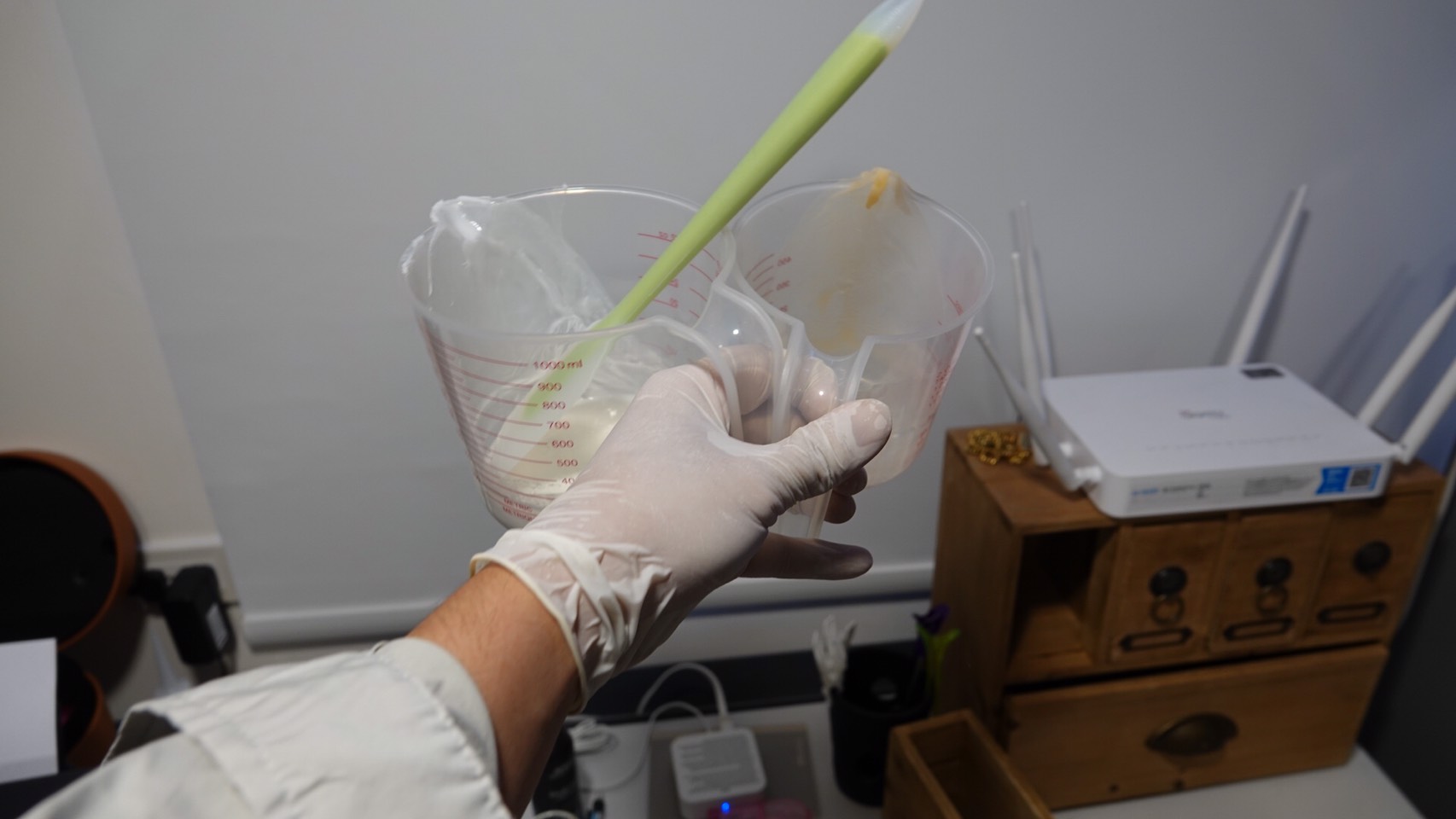 12.แก้วบีกเกอร์พลาสติก จำนวน 2 ใบ มีคราบยาเสพติด