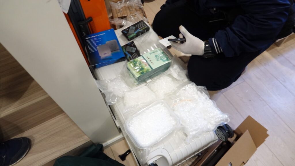 กล่าวคือจากข้อมูลของ บช.ปส.พบว่าประมาณเดือนตุลาคม 2563 บก.ปส.3 สามารถตรวจยึด เคนมผง เป็นครั้งแรกมีการซุกซ่อนอยู่ในกล่องขนมเตรียมส่งบริการขนส่งพัสดุ ปลายทางประเทศสหรัฐอารับเอมิเรตส์ จากการตรวจพิสูจน์มีส่วนผสมของยาคีตามี และไอซ์ หรือที่เรียกว่า เคนมผง โดยคนร้ายได้ใช้ชื่อและนามสกุลปลอม จนกระทั่ง ผบ.ตร.นำทีมสืบสวนชุดจับกุมของ บช.ปส. ดำเนินการไล่กล้องวรจรปิดจนกระทั่งพบภาพคนร้ายจึงได้ออกหมายจับของศาลอาญาที่ 56/2564 ลงวันที่ 19 ม.ค. 64 ตามภาพวงจรปิดพบว่าคนร้ายลักษณะเป็นชาวจีน และต่อมาสืบหาจนทราบชื่อภายหลังว่า นาย โช วาย เชิน(chou yi Shen) หรือ Mr.Liu chun chen เป็นสัญชาติไต้หวัน หลบกบดานในพื้นที่กรุงเทพฯ โดยมีห้องพักอยู่ตามคอนโดหรูระดับ 5 ดาว ย่าน ลุมพินี , พระราม 9 , ทาวน์อินทาว ,รามคำแหง และสุขุมวิท กรุงเทพฯ เนื่องจากตรงตามตำหนิรูปพรรณจากภาพวงจรปิดที่ชุดสืบสวนของ บช.ปส.จึงได้เข้าทำการจับกุมโดยนาย โช วาย เชิน ยอมรับว่าเป็นบุคคลตามภาพวงจรปิดจริง และตรวจค้นห้องพัก ชั้น 8 ของคอนโด( ขอสงวน) ถนนอโศกมนตรี แขวงมักกะสัน เขตราชเทวี กรุงเทพฯ พบสารเสพติด ได้แก่ ยาอี ยาไอซ์ ยาไฟว์ไฟว์ คีตามีน โดมิคุ่ม โคเคน แอลเอสดี พร้อมอุปกรณ์การผสมสารเสพติดที่ยึดเป็นของกลาง , ขยายผลตรวจค้นคอนโด ย่านรัชดา-พระราม 9 ชั้น 15 แขวงห้วยขวาง เขตห้วยขวาง กรุงเทพฯ พบสารเสพติดได้แก่ คีตามีน ,ยาอี , แอลเอสดี จำนวน 48 แผ่น ,โคเคน , เฮโรอีน และ ไอซ์ , ขยายผลตรวจค้นคอนโดย่านทาว์อินทาว แขวงพลับพลา เขตวังทองหลาง กรุงเทพฯ ได้แก่ กล่องพัสดุบริการไปรษณีย์จำนวนมาก และขยายผลตรวจค้นคอนโด สุขุมวิท 50 แขวงพระโขนง เขตคลองเตย กรุงเทพฯ พบ ยาไอซ์ , ยาคิตามีน และอุปกรณ์การซีนการแพ็ค จึงยึดทั้งหมดไว้เป็นของกลาง จึงแจ้งข้อ