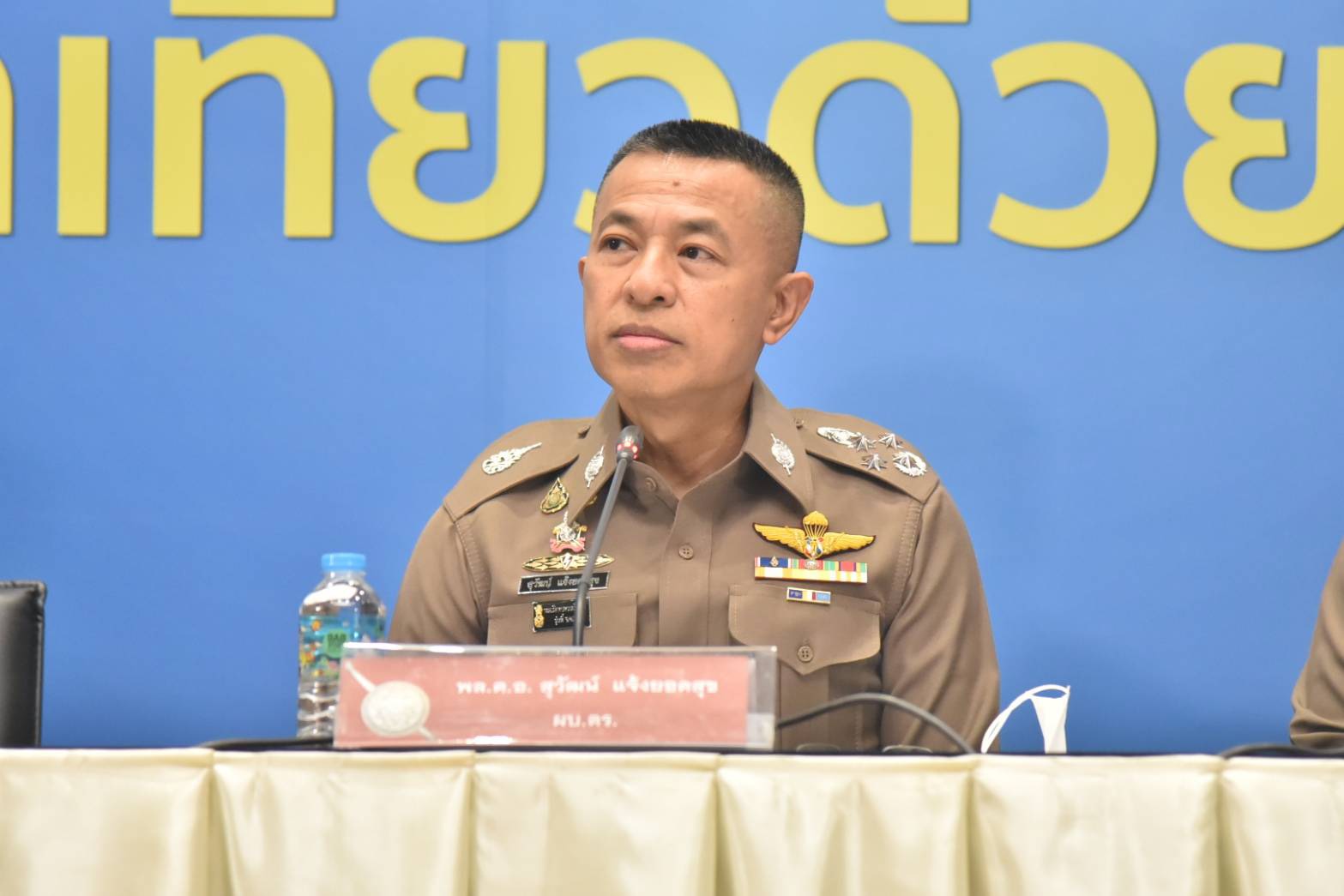 วันที่ 27 มกราคม 2564 ที่สำนักงานตำรวจแห่งชาติ (ตร.) พล.ต.อ.สุวัฒน์ แจ้งยอดสุข ผู้บัญชาการตำรวจแห่งชาติ (ผบ.ตร.) พร้อมด้วยพล.ต.อ.ดำรงศักดิ์ กิตติประภัสร์ รองผบ.ตร. พล.ต.ท.นิทัศน์ ลิ้มศิริพันธ์ ผบช.ทท. พล.ต.ต.จิรภพ ภูริเดช รองผบช.ก. พ.ต.อ.เอนก เตาสุภาพ รองผบก.ป. นายเขมพล อุ้ยตระกุล เลขานุการรัฐมนตรีว่าการกระทรวงการท่องเที่ยวและกีฬา น.ส.สภัทร์พร ธรรมาภรณ์พิลาส รองผู้อำนวยการสำนักงานเศรษฐกิจและการคลัง กระทรวงการคลัง นายพงษ์สิทธิ์ ชัยฉัตรพรสุข รองกรรมการผู้จัดการใหญ่ ผู้บริหารสายงานกำกับกฎเกณฑ์และกฎหมาย ธนาคารกรุงไทย ร่วมกันแถลงผลปฏิบัติการกวาดล้างขบวนการทุจริตโครงการ “เราเที่ยวด้วยกัน” ผู้ต้องหา 50 ราย หลังจากเมื่อช่วงเช้าที่ผ่านมา ตำรวจกองปราบปราม กระจายกำลังเข้าตรวจค้นพื้นที่เป้าหมาย 55 จุด