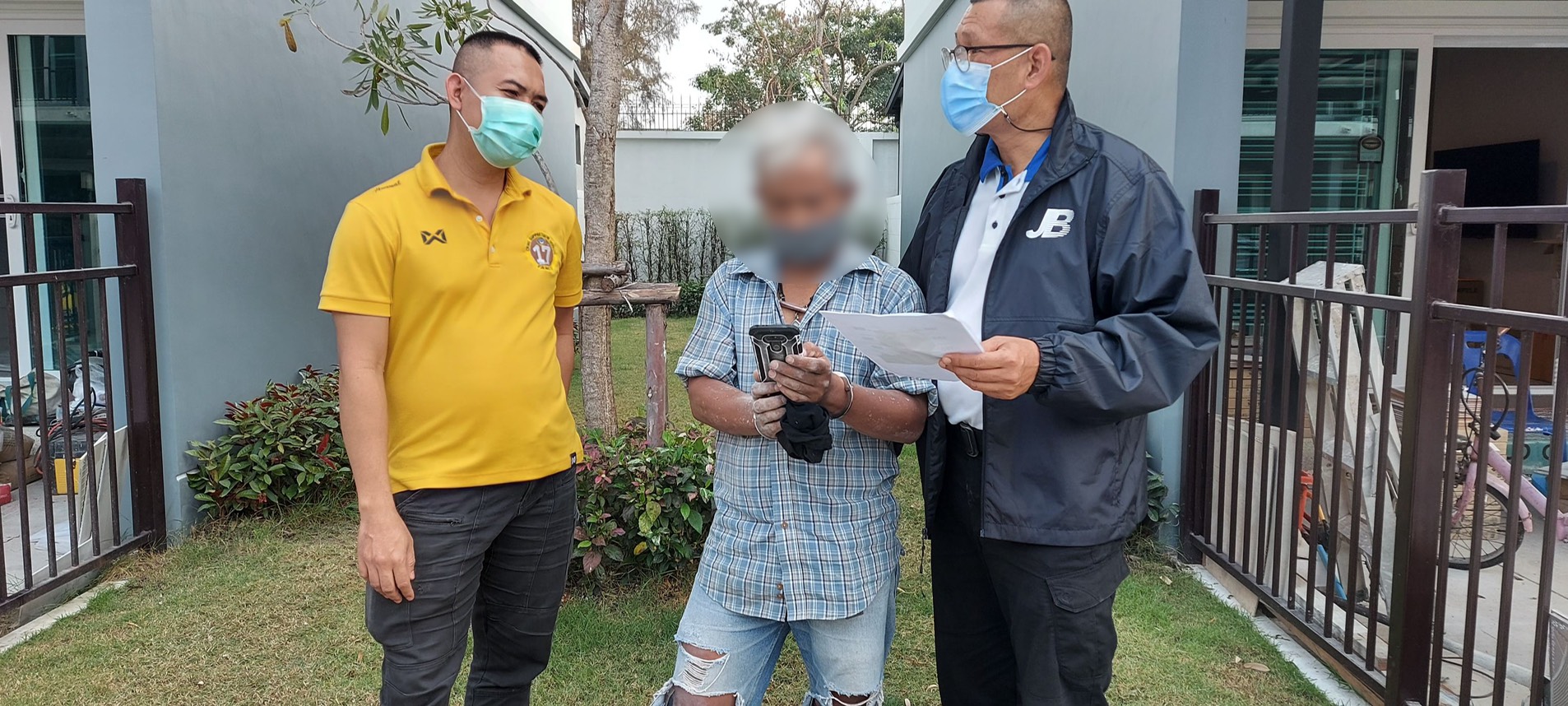 เจ้าหน้าที่ตำรวจ บก.ป. นำโดย พ.ต.ต.ทัตพร เลขะวัฒนพงษ์ สว.กก 1.บก.ป., ร.ต.อ.รัฐชิน เจริญรัมย์ รรท.รอง สว.กก.1 บก.ป.