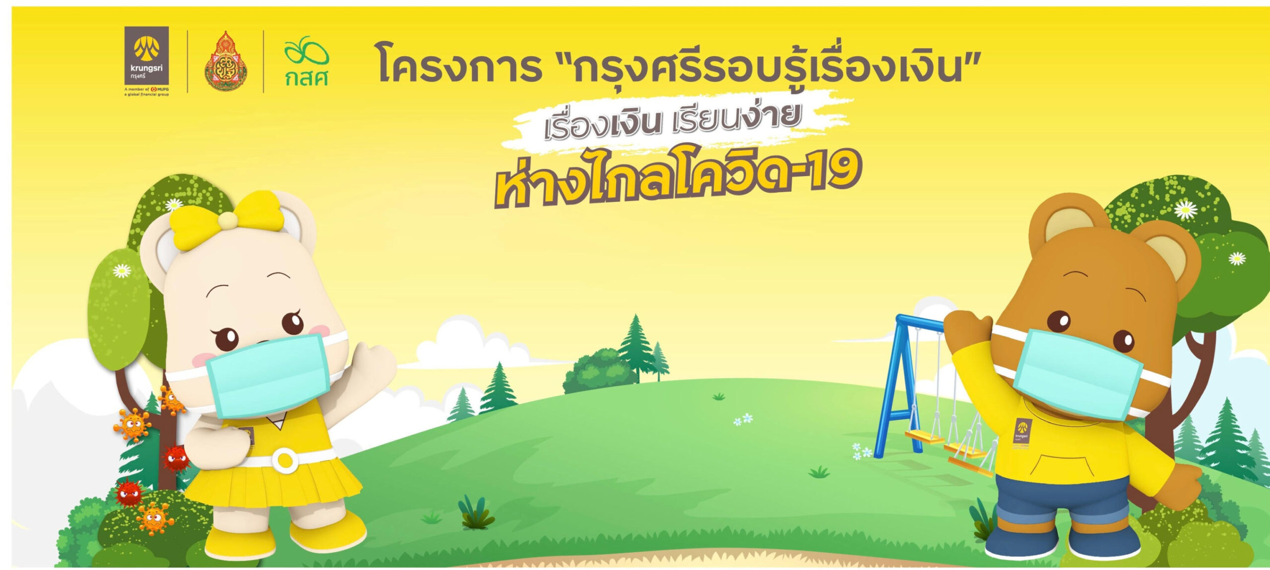 กรุงเทพฯ (1 กุมภาพันธ์ 2564) ธนาคารกรุงศรีอยุธยา จำกัด (มหาชน) ร่วมกับสำนักงานคณะกรรมการการศึกษาขั้นพื้นฐาน (สพฐ.) และกองทุนเพื่อความเสมอภาคทางการศึกษา (กสศ.) เน้นย้ำความรู้ ความเข้าใจและการปฏิบัติตามมาตรการป้องกันการแพร่ระบาดของโรคติดเชื้อไวรัสโควิด-19 แก่เยาวชน เมื่อกลับสู่ระบบการเรียนในห้องเรียน ผ่านสื่อแอนิเมชันภายใต้โครงการ “กรุงศรีรอบรู้เรื่องเงิน” ชุด เรื่องเงิน เรียนง่าย ห่างไกลโควิด-19 ที่สนุกสนาน เข้าใจง่าย และสอดคล้องกับการใช้ชีวิตรูปแบบวิถีใหม่ (New Normal) อาทิ การรักษาระยะห่างระหว่างบุคคล การสวมหน้ากากอนามัยอยู่เสมอและล้างมือบ่อยๆ เป็นต้น โดยโครงการดังกล่าวเป็นหนึ่งในพันธกิจความยั่งยืนของกรุงศรีที่ครอบคลุมมิติด้านสังคม สิ่งแวดล้อม และ ธรรมาภิบาล หรือ ESG