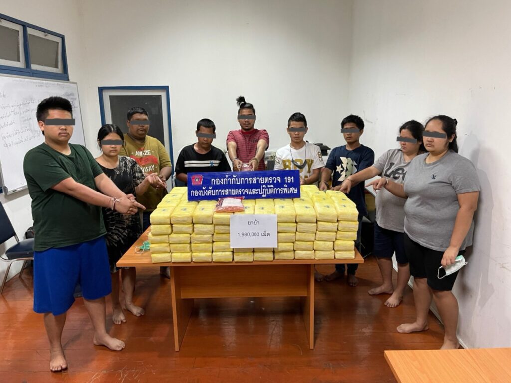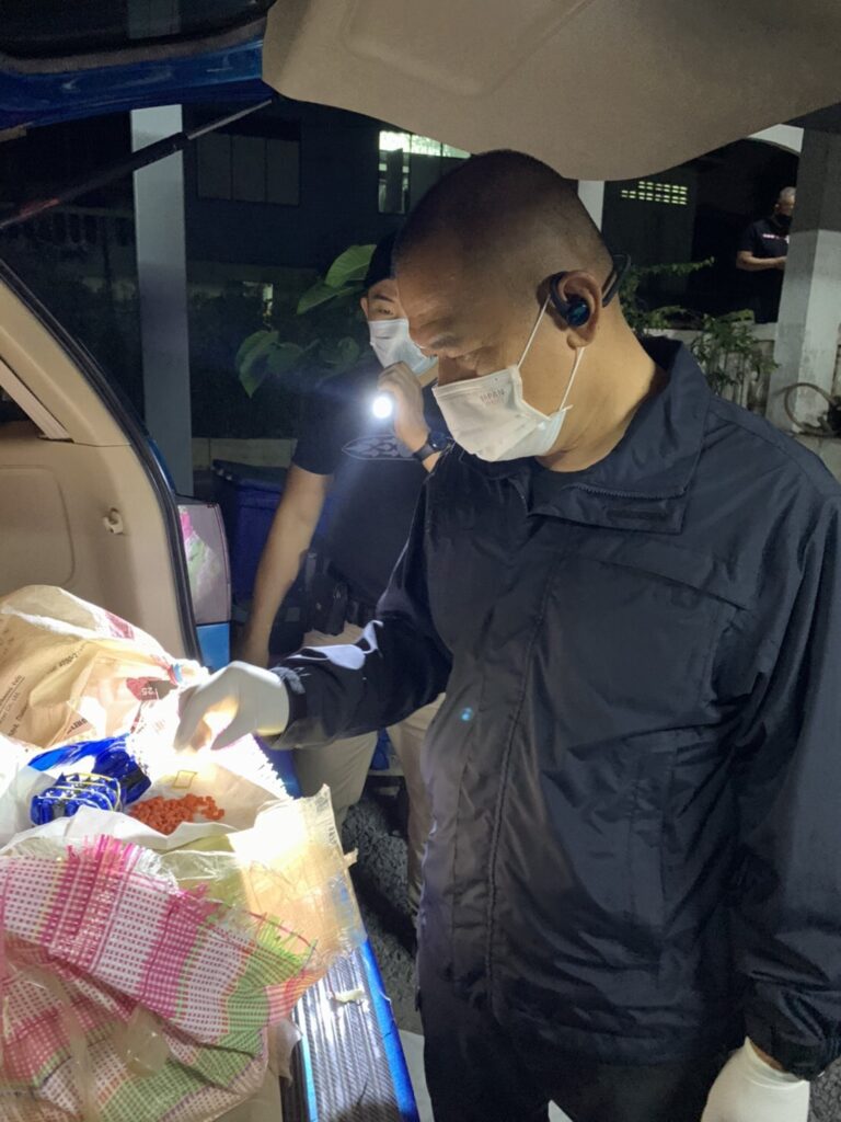 จนกระทั่งวันที่ 6 ก.พ.ที่ผ่านมาเจ้าหน้าที่ตำรวจได้ขอตรวจค้นและเข้าจับกุมพบยาบ้าในรถยนต์ 10 กระสอบประมาณ 1,980,000 เม็ด พร้อมผู้ต้องหา 9 ราย โดยผู้ต้องหารับสารภาพว่าเป็นผู้รับจ้างขนยาเสพติดจริงโดยได้ค่าจ้างครั้งละ 1,000,000 – 1,200,000 บาท ทั้งนี้ผู้ถูกจับกุมได้ให้ข้อมูลที่มาของยาบ้าเจ้าหน้าที่จึงเดิมทางเข้าตรวจค้นบ้านพัก พบยาเสพติดในรถยนต์ ที่จอดในบ้าน 2,000,000 เม็ด และพบยาบ้าในบ้านอีก 180,000 เม็ด ไอซ์น้ำหนัก 9 กก.,กัญชาอัดแท่ง 5 กก.
